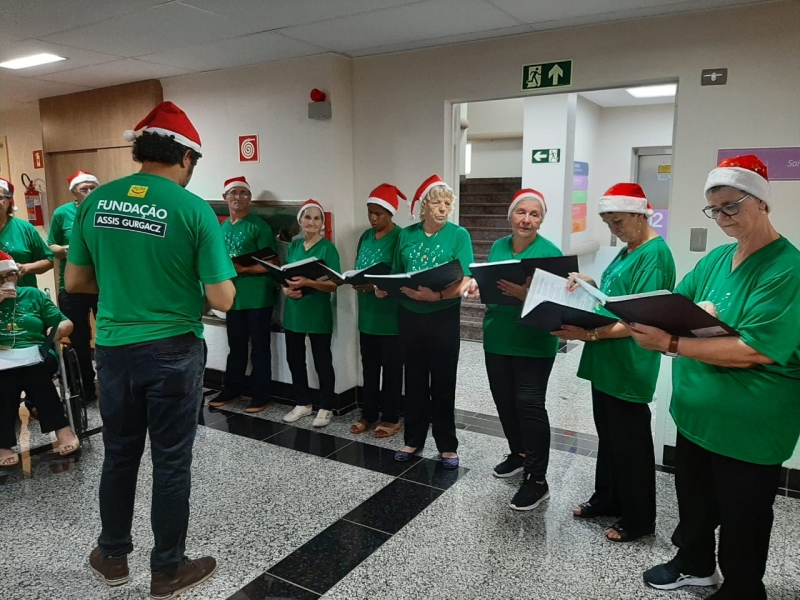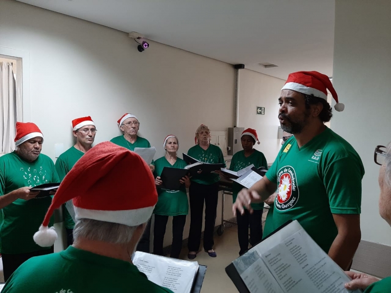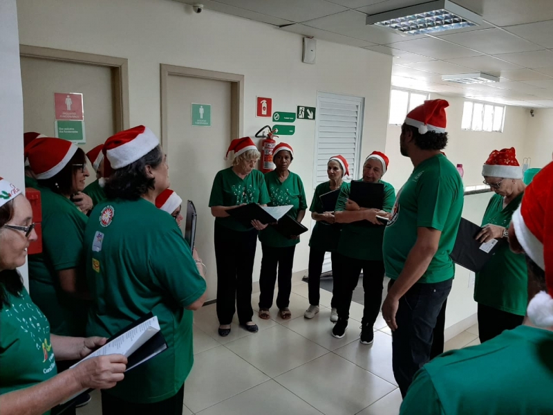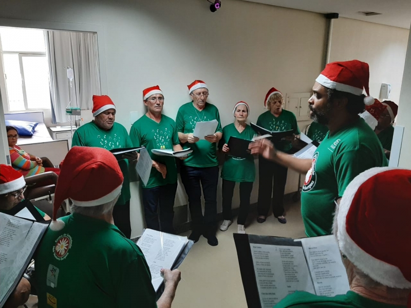 O silêncio nos hospitais foi interrompido por vozes que cantaram, encantaram e levaram mensagens de amor aos pacientes das unidades. O Coral HarmoniFAG, formado por idosos do Centro de Convivência Nair Ventorin Gurgacz, levou alegria aos pacientes do Hospital Universitário do Oeste do Paraná, Fundação Hospitalar São Lucas e Uopeccan.