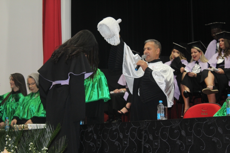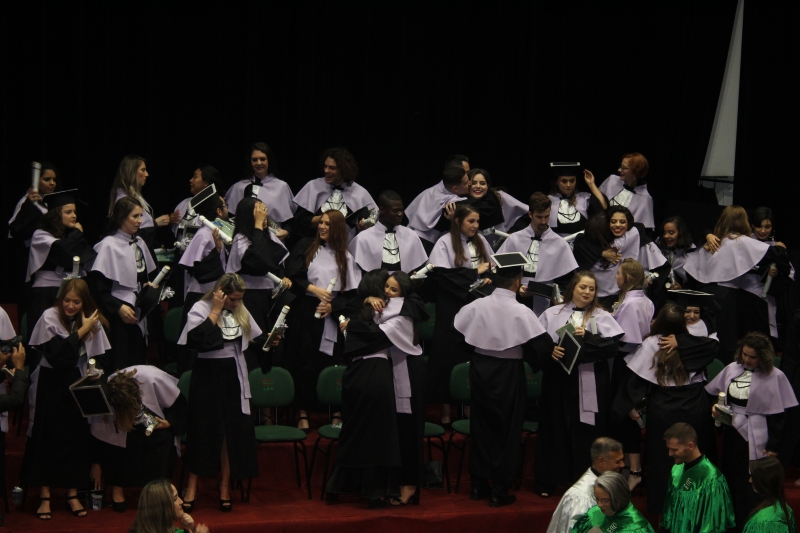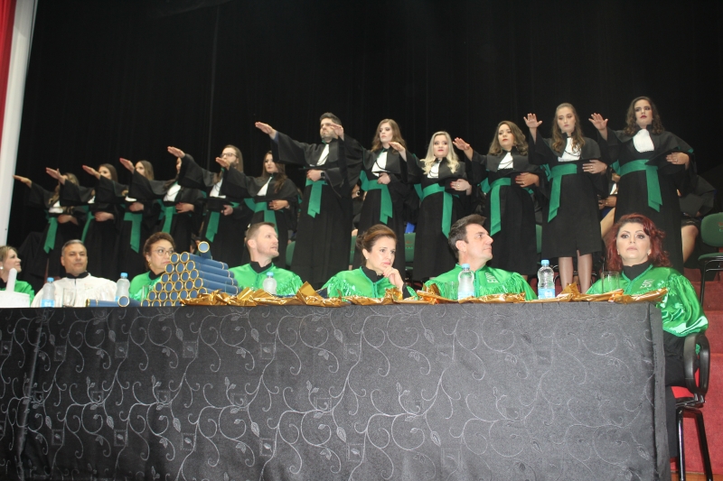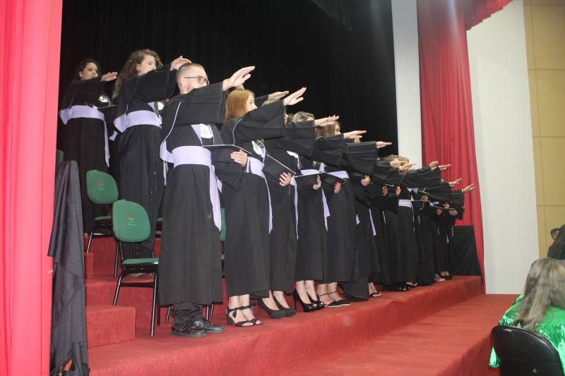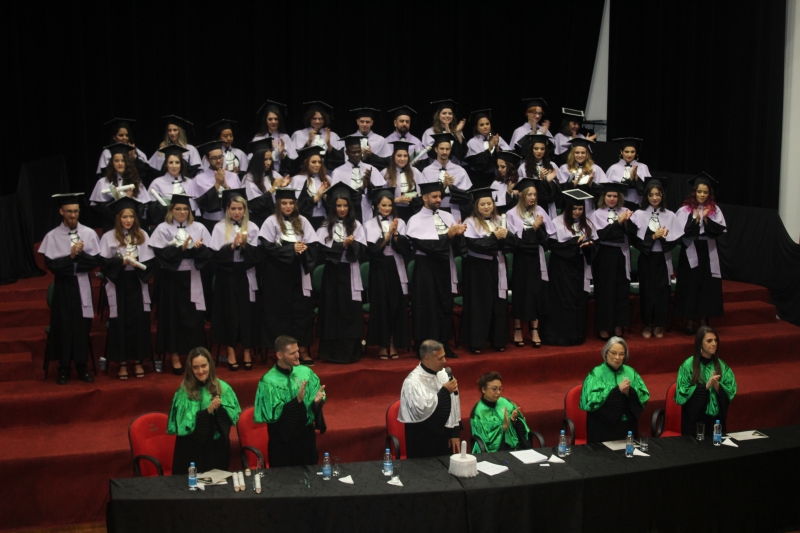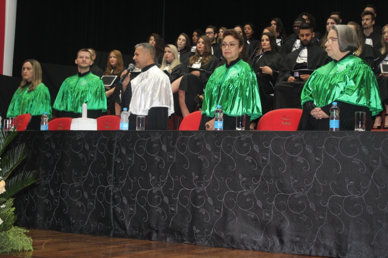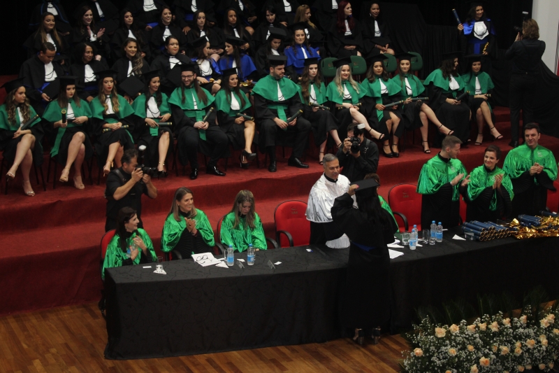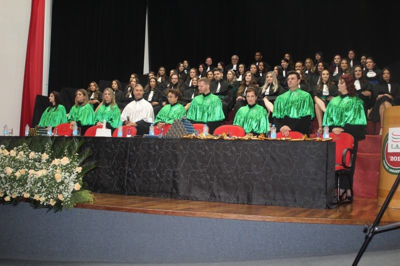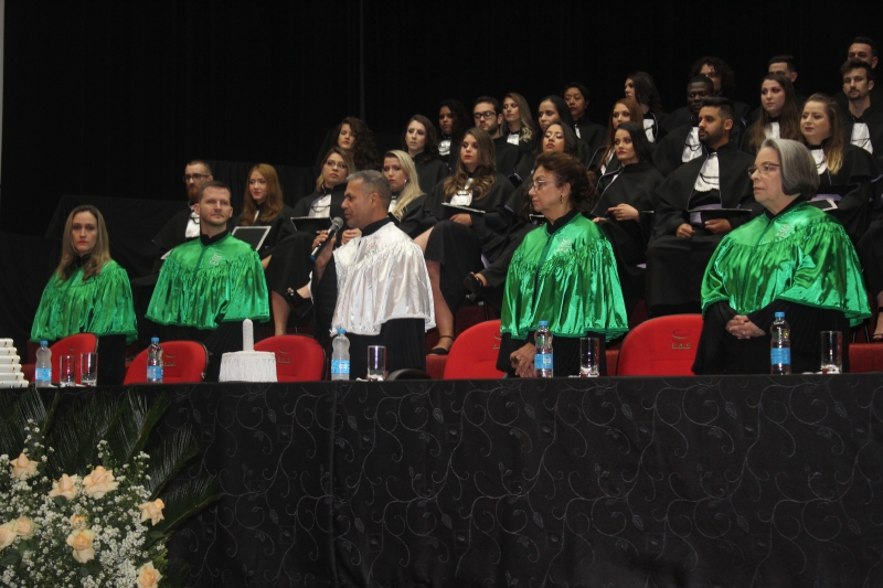As solenidades foram presididas pelo vice-reitor, Sérgio De Angelis, com a presença do coordenador do curso de Letras e Pedagogia, Paulo Fachin, e da coordenadora de Fonoaudiologia, Jenane Topanotti. A turma de Letras elegeu como paraninfa a professora Patrícia David, como patronesse a professora Noiara Paim Zardo e como nome de turma a professora Leandra Aparecida Fumagalli.