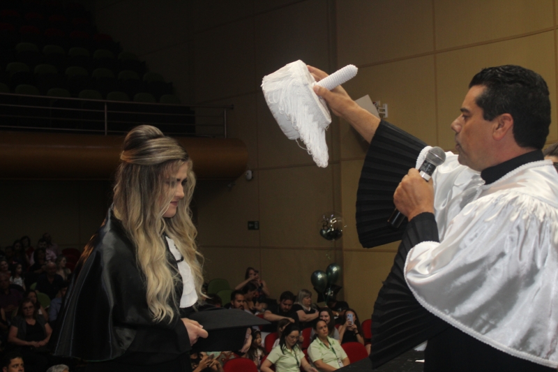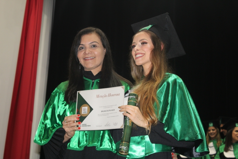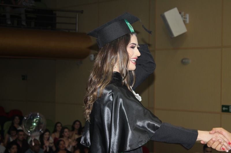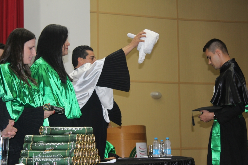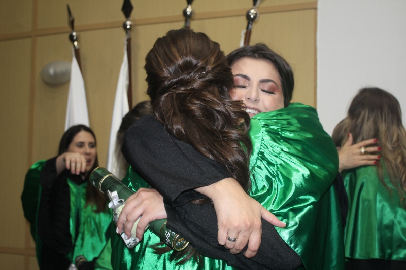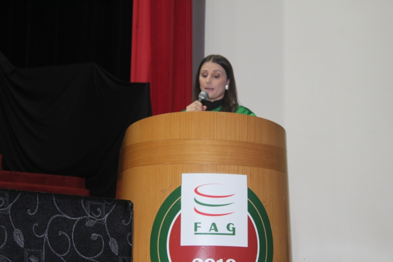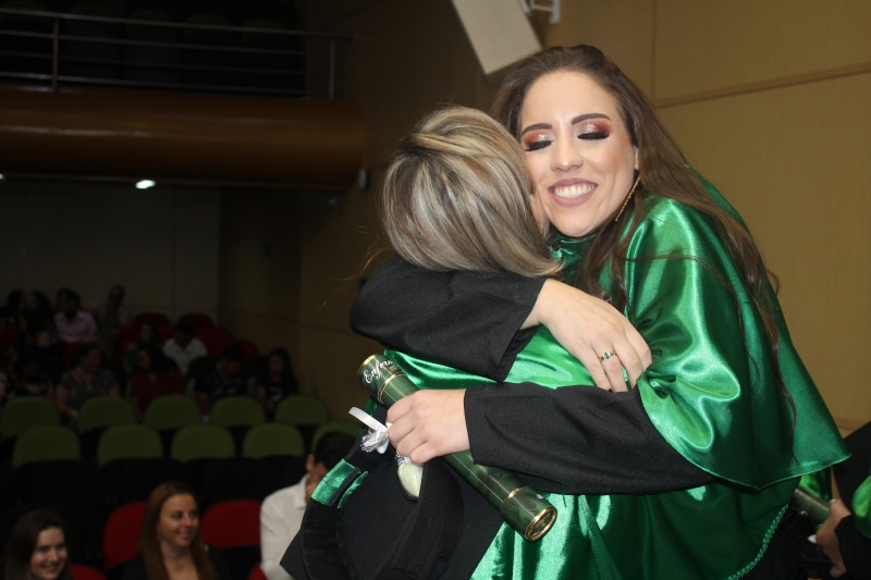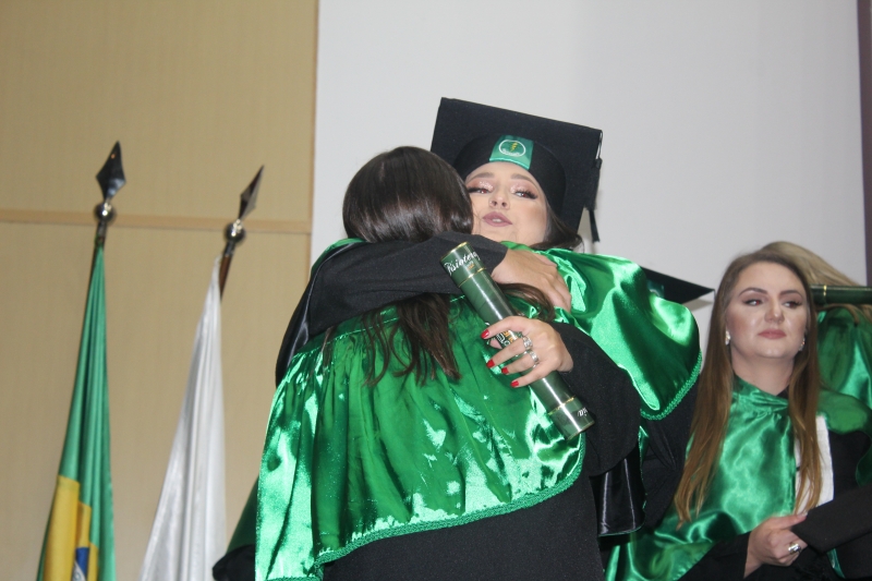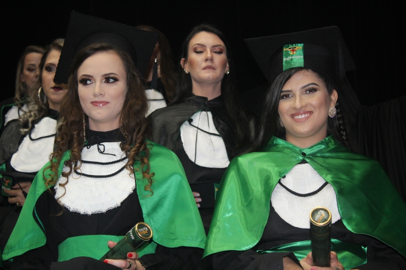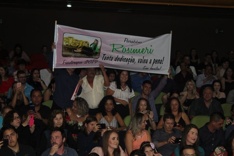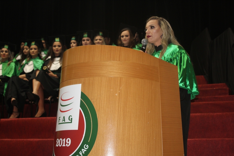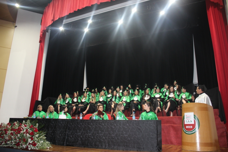 A segunda cerimônia para os formandos de Fisioterapia contou com a presença da Coordenadora, Leda Paes Walcker. Foram homenagens os docentes: Marcelo Taglietti, Cesar Antonio Luchesa (Patrono) e Lyziana Vieira (Paraninfa). A acadêmica com a melhor nota da turma e que recebeu a Láurea Acadêmica foi Bruna Hack. "Foi 100% inesperado, ainda não caiu a ficha. Estou muito feliz. Eu saio da FAG com o coração cheio de gratidão", comenta.