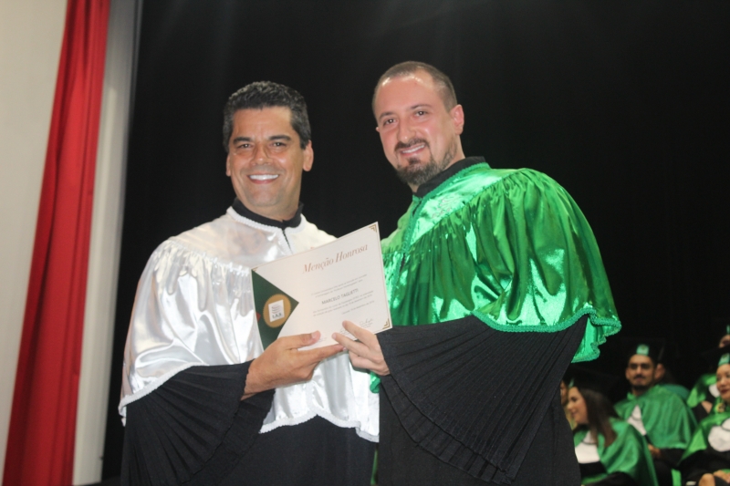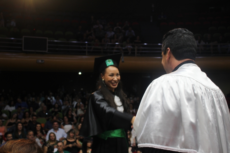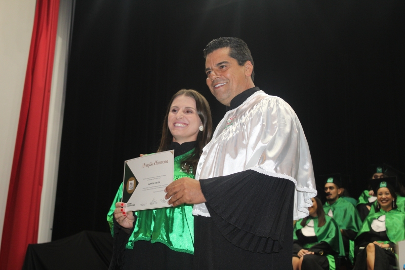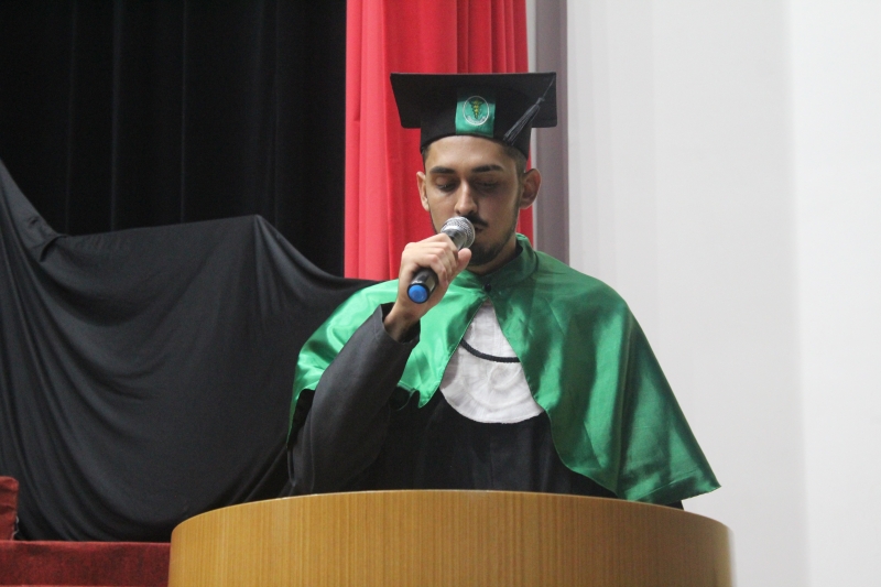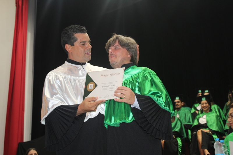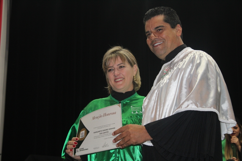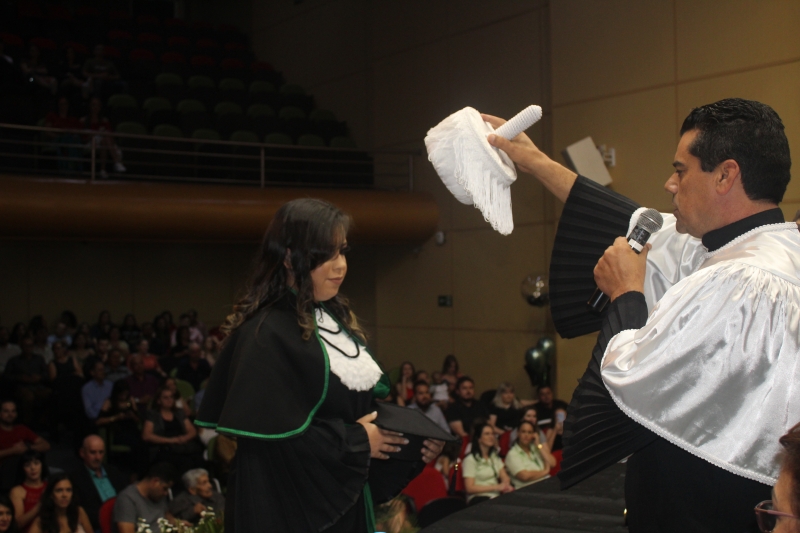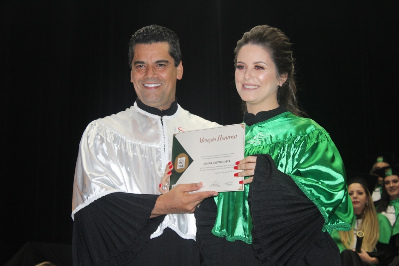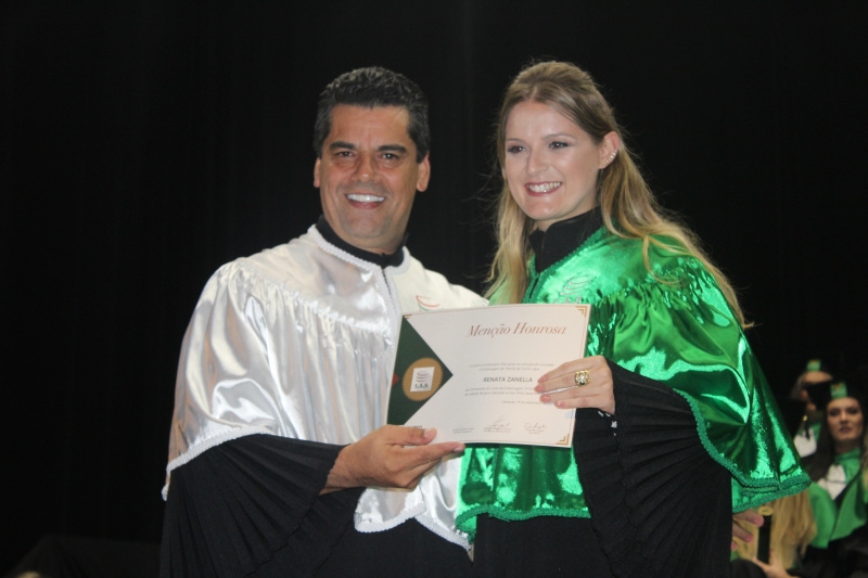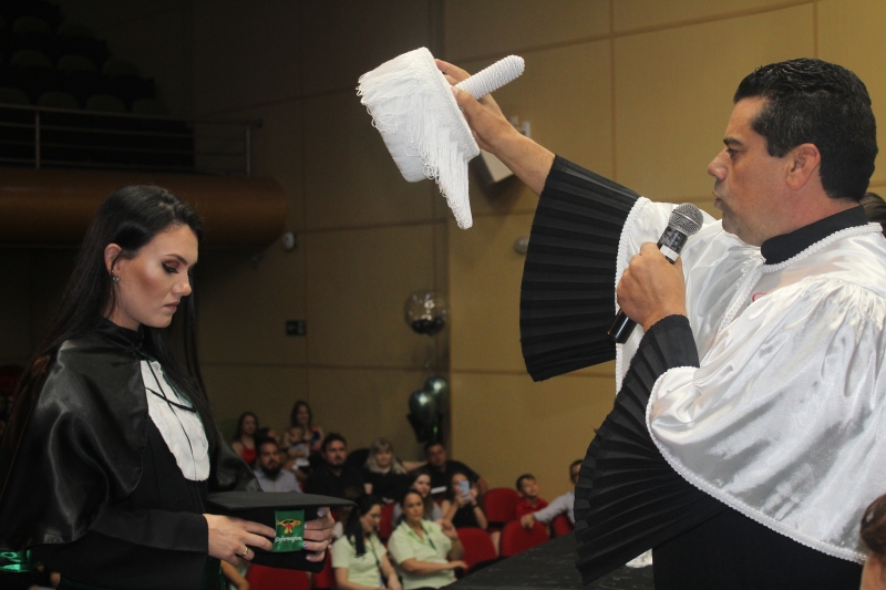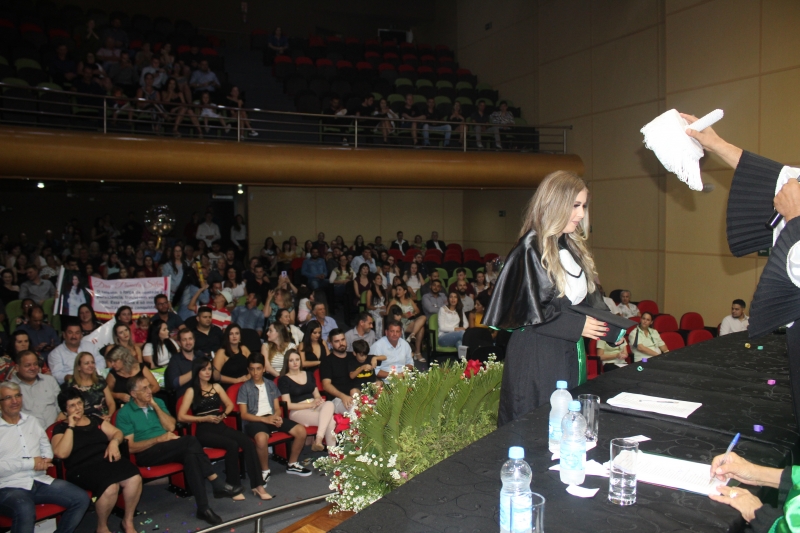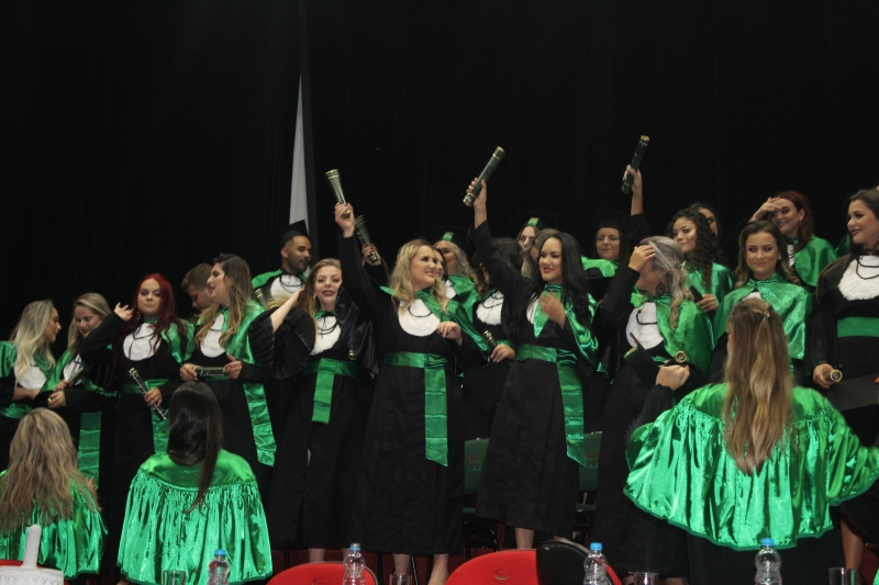 A segunda cerimônia para os formandos de Fisioterapia contou com a presença da Coordenadora, Leda Paes Walcker. Foram homenagens os docentes: Marcelo Taglietti, Cesar Antonio Luchesa (Patrono) e Lyziana Vieira (Paraninfa). A acadêmica com a melhor nota da turma e que recebeu a Láurea Acadêmica foi Bruna Hack. "Foi 100% inesperado, ainda não caiu a ficha. Estou muito feliz. Eu saio da FAG com o coração cheio de gratidão", comenta.