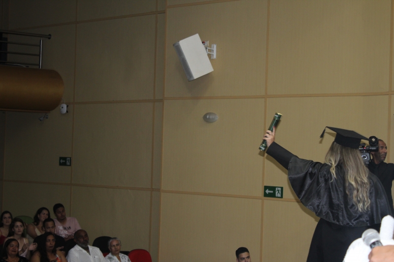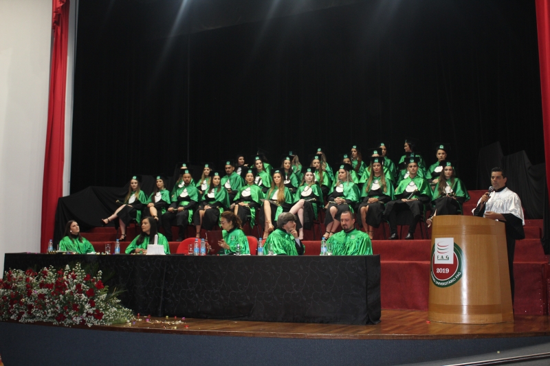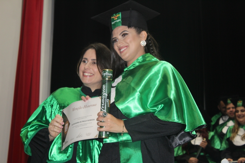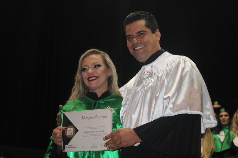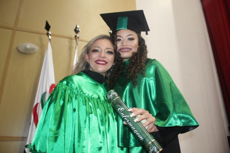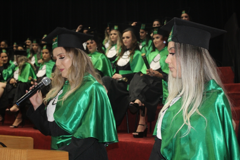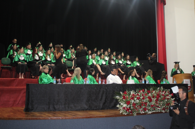 A primeira sessão solene foi do curso de Enfermagem. Além da Coordenadora do curso, Rafaela Bramatti, compuseram a mesa de honra como professores homenageados: Renata Vanzella (Nome de Turma), Margarete Fanhani (Patronesse) e Vanessa Engelage (Paraninfa). Em seu discurso, a professora Vanessa emocionou o público citando casos reais da profissão, em que ela se encontrou com a vida - algumas que nasceram, as que foi possível salvas e outras que foram perdidas. "São histórias que eu vivi na minha profissão e que durante as aulas eu compartilhei com eles também para mostrar o valor da vida e a importância do trabalho deles. Me inspirei para que eles entendam que a vida será o bem mais precioso com o qual eles vão trabalhar", relata.