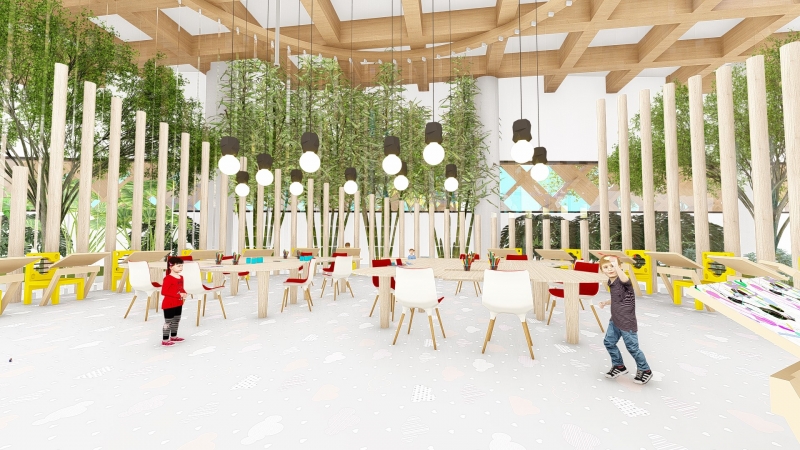 Por meio de uma arquitetura criativa, com princípios sensoriais, a ideia é que o centro de referência permita um desenvolvimento integral da criança, proporcionando experiências estimuladoras, bons cuidados e ambiente seguro. "Eu queria propor uma creche diferenciada, já que não existe uma com esses princípios sensoriais na cidade, colocando a criança em primeiro plano. Dessa forma, buscamos a ideia de uma composição projetual que priorizasse o bem-estar, o aprendizado e a segurança dos alunos por meio da sensorialidade na edificação, seja na utilização do mobiliário diferenciado, no uso das cores, na presença de áreas recreativas, bem como a influência que o paisagismo promove na obra, por meio de jardim sensorial", defende a autora do trabalho.