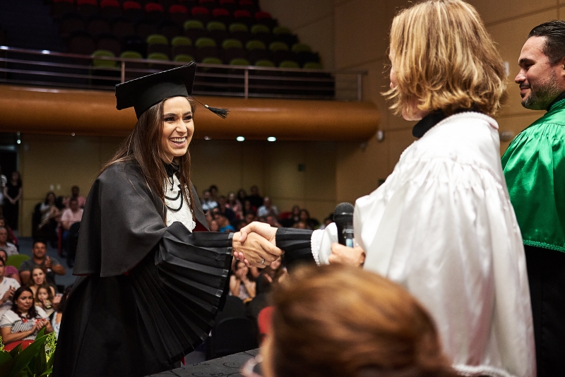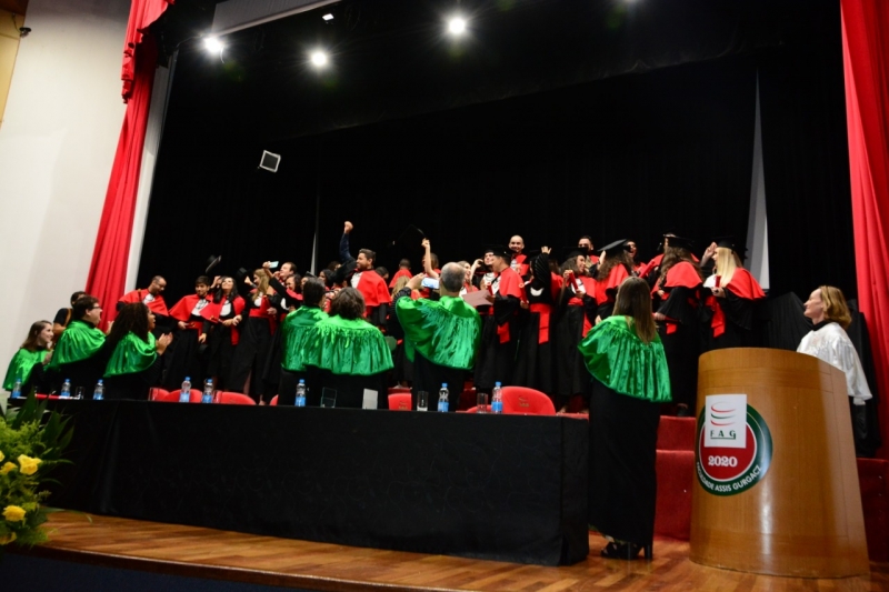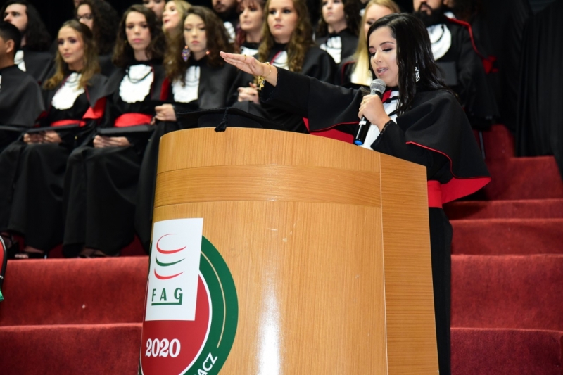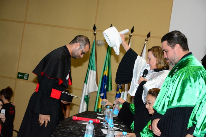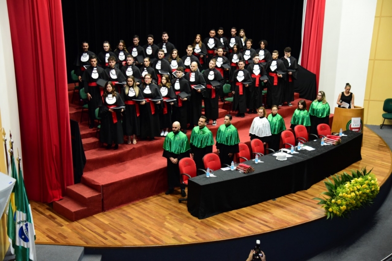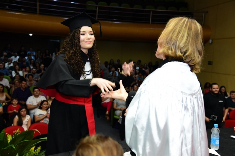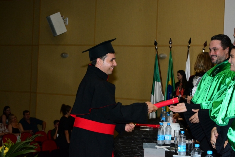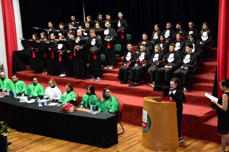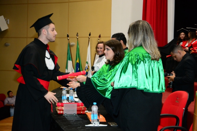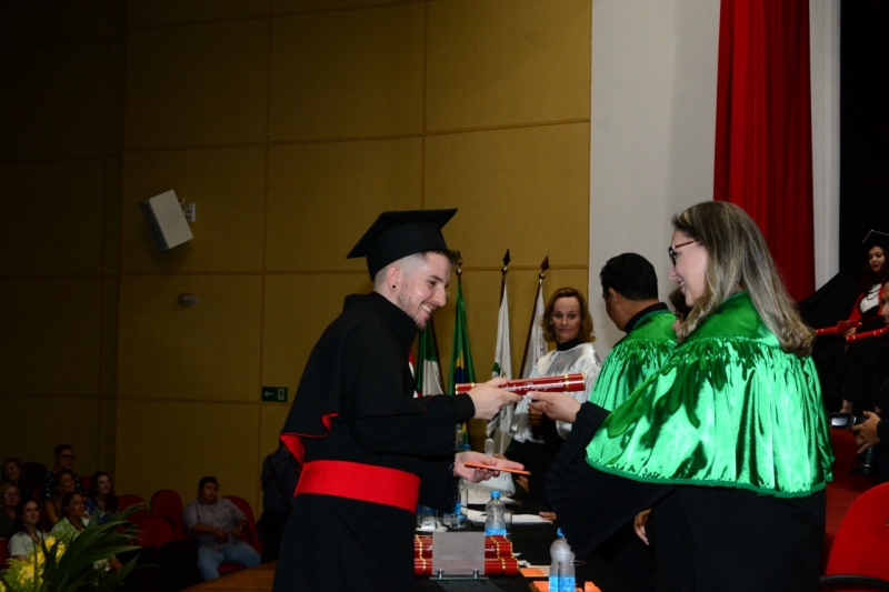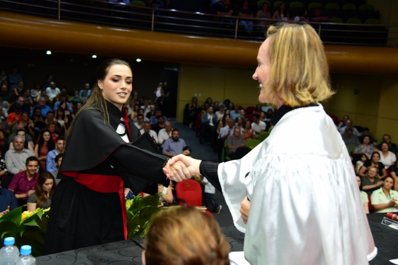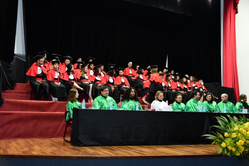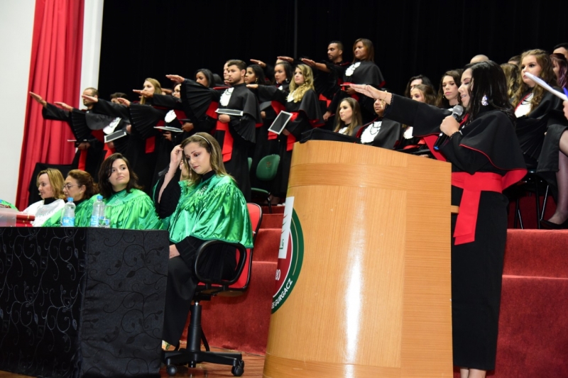 Foram duas cerimônias de colação de grau, na sexta-feira (17), presididas pela pró-reitora administrativa, Jaqueline Gurgacz Ferreira. Os novos profissionais de Publicidade e Propaganda homenagearam como paraninfo o professor Alex Sandro de Araujo Carmo, como patronesse Laila Rotter Schmidt Smoralek e como Nome de Turma, Luciane Zavalia Araújo. A turma de Design Gráfico escolheu como paraninfo o professor Rodrigo Perim dos Santos, como patrono Alex Sandro de Araujo Carmo e como Nome de Turma, Angelo Osni Machado.