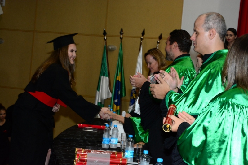 Na segunda solenidade, colaram grau os novos profissionais de Jornalismo e Tecnologia em Fotografia. A turma de Jornalismo tem como paraninfa a professora Julliane Brita, como patrono o professor Gustavo dos Santos Prado e como Nome de Turma a professora Tátila Pereira da Silva. O tecnólogos em Fotografia homenagearam como paraninfa a professora Tainara Eulália Nascimento de Oliveira, como patrono Fábio Luiz conterno e como Nome de Turma, Victoria Tonet Diehl.