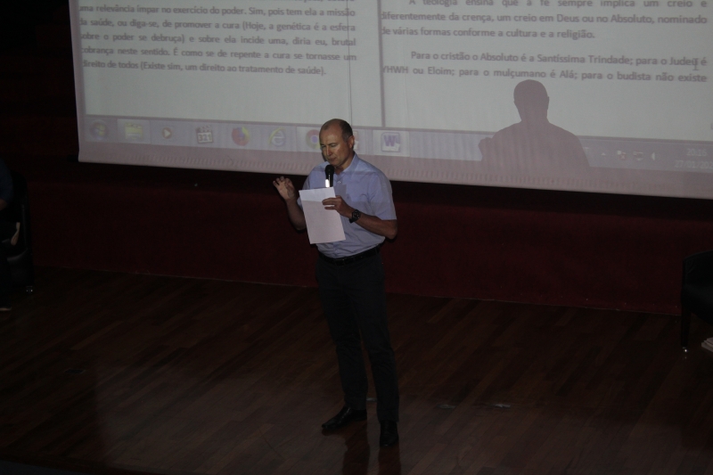 A primeira mesa-redonda foi sobre Educação e Espiritualidade. Os mediadores foram o Padre Reginei José Modolo (Padre Zico), que abordou o tema "Fé: Contexto Humano e Religioso"; o médico do Hospital São Lucas, Mauro Bonatto, que falou sobre "Epigenética: modelo interativo relacional"; e o professor Enzio Obana, que é mestre em Educação, e explorou o tema "Corpo, Mente e Cérebro: uma releitura".