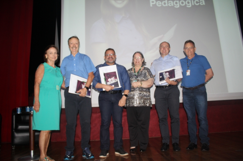 Os mediadores da segunda mesa-redonda foram o coordenador do NEAD (Núcleo de Educação a Distância), Cleber Fagundes Ramos, que mostrou como está o cenário da educação nacional referente ao avanço do ensino a distância; o pró-reitor acadêmico, Afonso Cavalheiro Neto, que falou sobre as mudanças nos instrumentos de avaliação do MEC (Ministério da Educação); e a coordenadora do NAAE (Núcleo de Atendimento e Apoio ao Estudante), Patrícia Barth Radaelli, cujo tema foi processo de implantação e consolidação do ecossistema de permanência de estudantes.