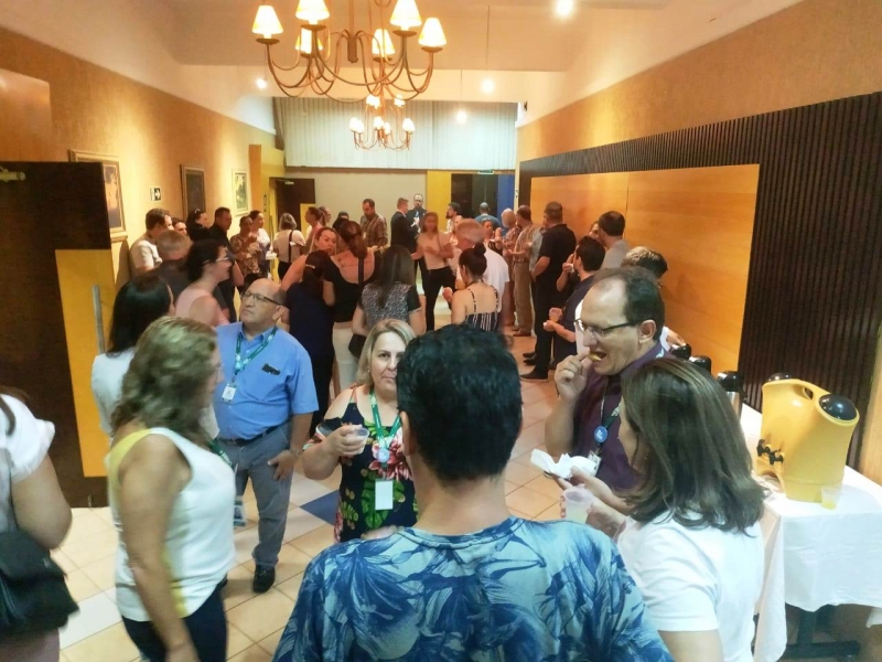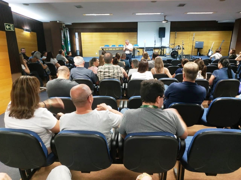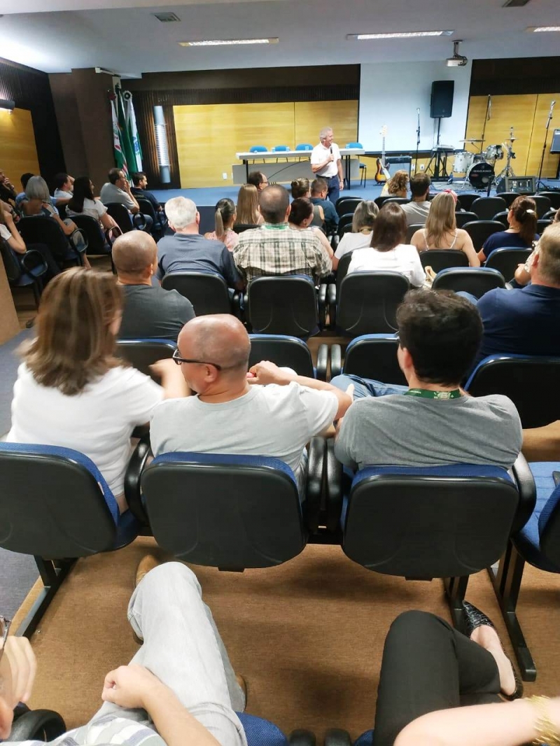 Professores foram recebidos com música, palestra e coquetel no auditório da instituição