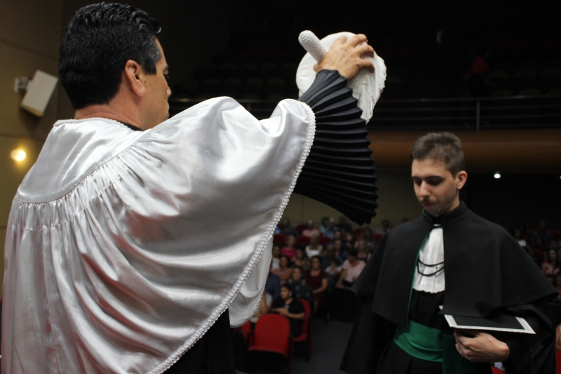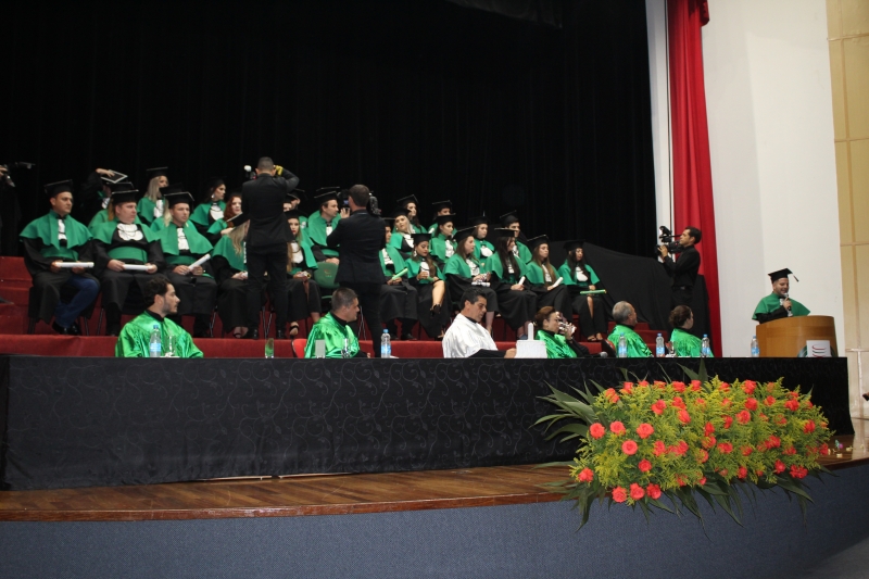 Foram duas cerimônias. Na primeira, receberam o diploma os formandos de Medicina Veterinária T01 do período noturno. Compuseram a mesa de honra o Coordenador do curso, Adriano Ramos Cardoso; o Paraninfo e Conselheiro do CRMV (Conselho Regional de Medicina Veterinária), Edmilson Santos de Freitas; o Patrono, Euler Marcio Ayres Guerios; e a Homenageada como Nome de Turma, Livia Maria Tulio.