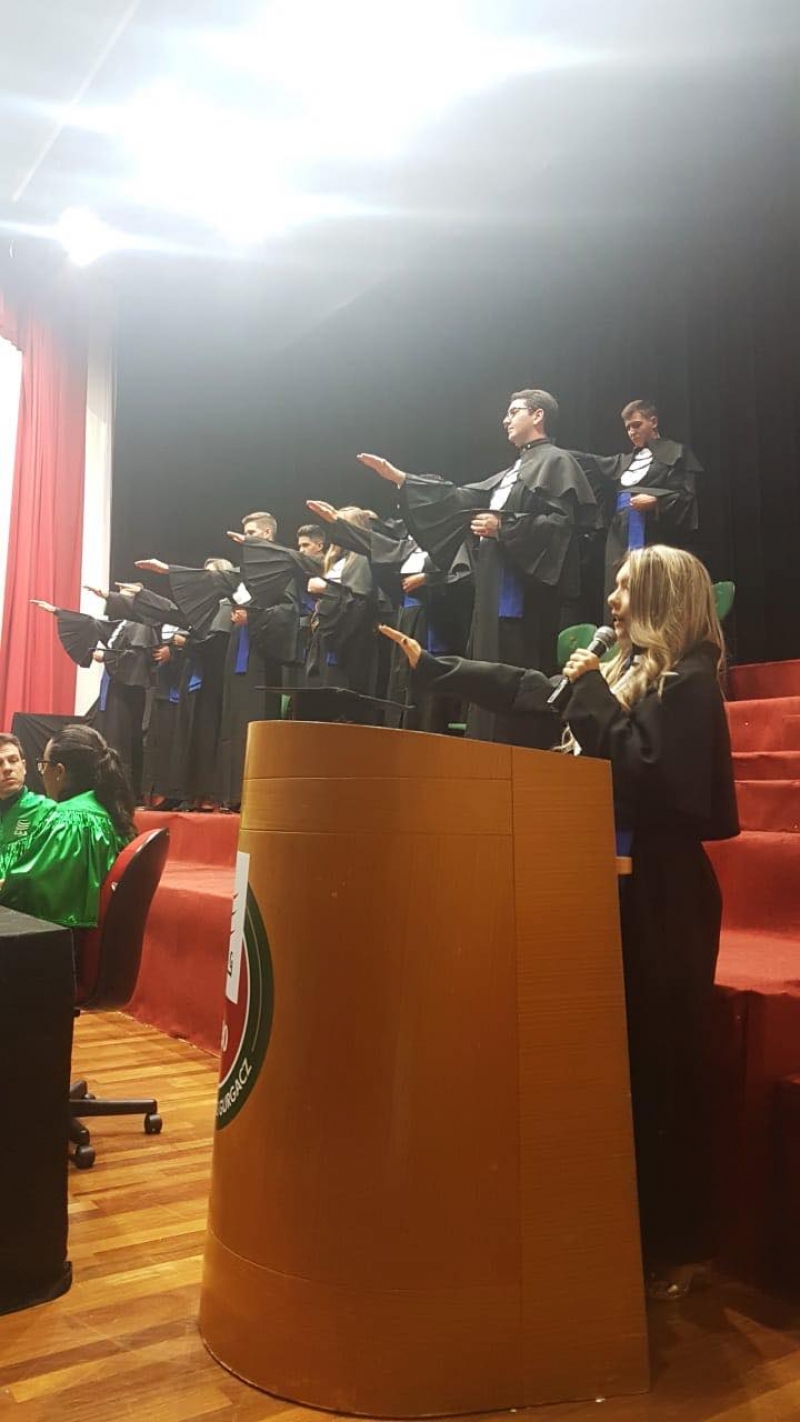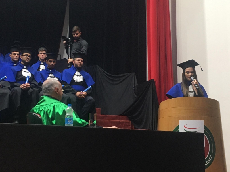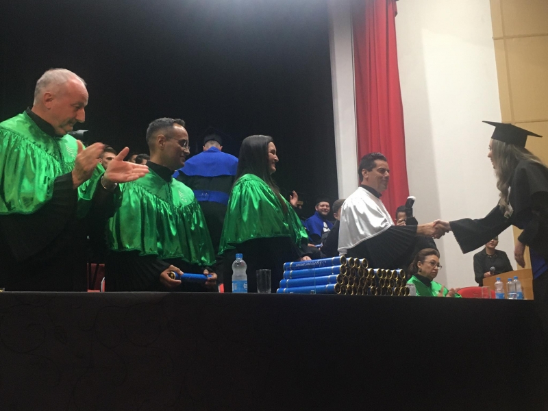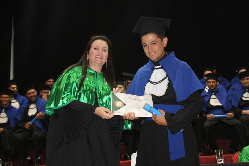 Os formandos Jameson Borges da Silva, Thalita Perozzo, Fernanda Dall Agnol Passos, Ébano Negrini Delfino, foram homenageados com a Láurea Acadêmica por terem obtido as melhores médias de suas respectivas turmas.