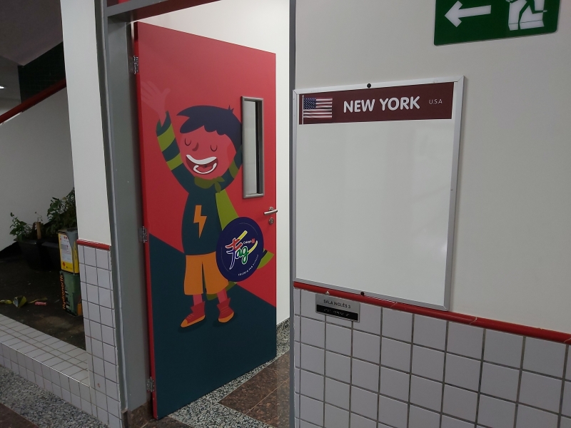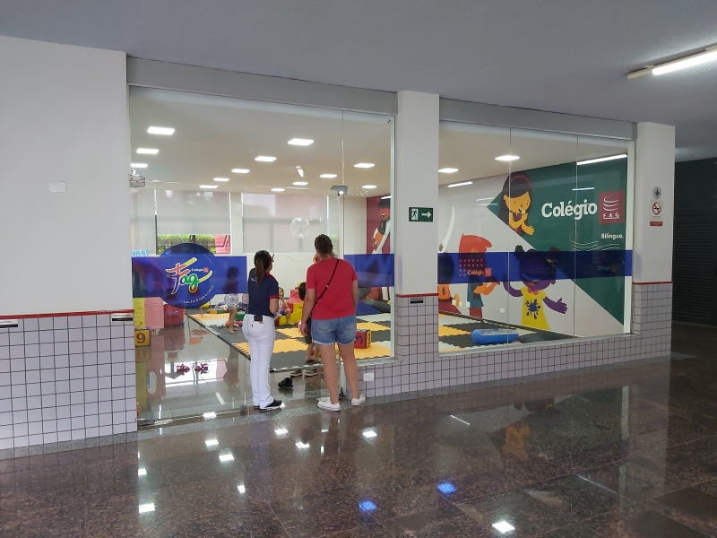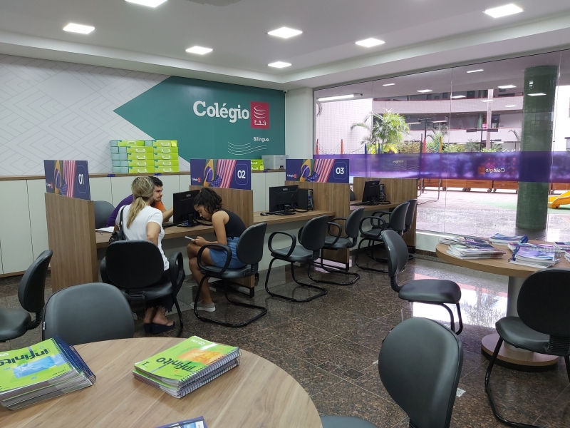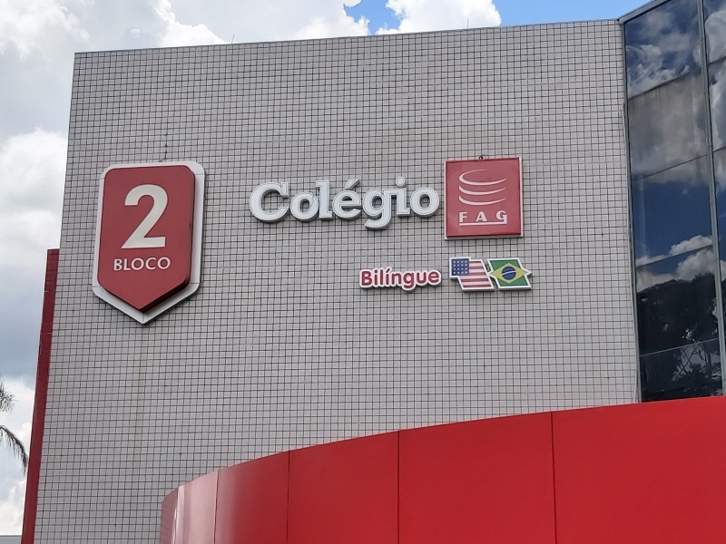Outro aspecto interessante é a identidade. Agora o Colégio FAG carrega não só a bandeira do Brasil, mas também a dos Estados Unidos, reforçando visualmente o compromisso do ensino bilíngue.