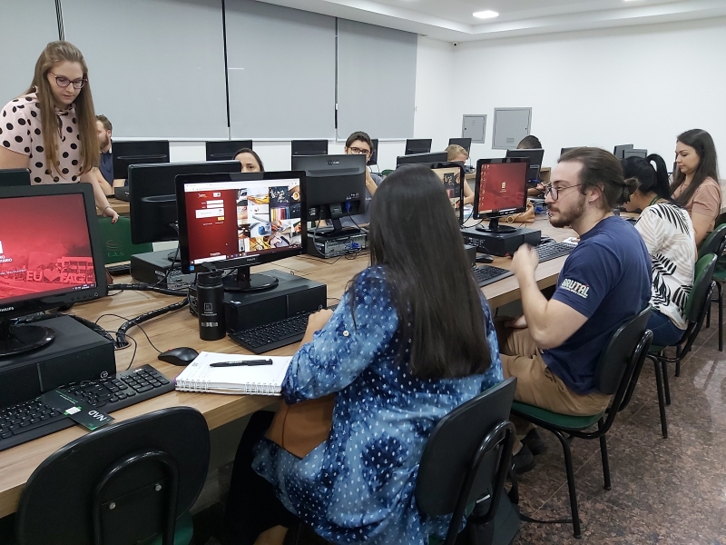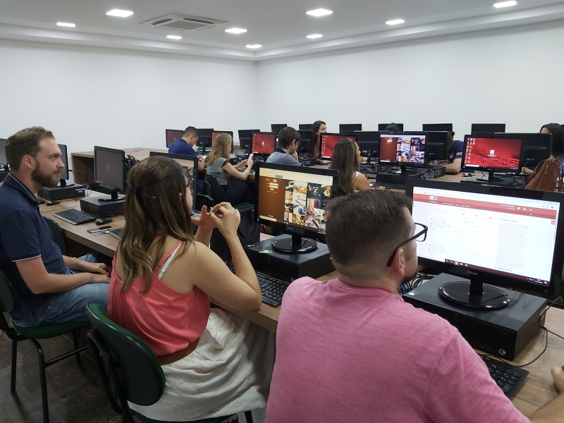 Após a primeira parte, os professores se dirigiram para o Laboratório de Informática onde aprenderam, na prática, a lidar com os sistemas tecnológicos utilizados na FAG. Exemplos são o Sagres, COOPEX, Classroom (fruto da parceria entre a instituição e o Google), etc. Também foram esclarecidas dúvidas sobre o setor de CPD (Centro de Processamento de Dados).