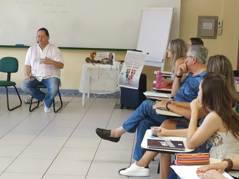 Outra turma que retomou as atividades foi a de Especialização em Constelação Familiar. O professor que abriu os trabalhos foi Marcelo Bertelli que trabalha a disciplina "As cinco ordens da ajuda em Bert Hellinger e ética profissional".