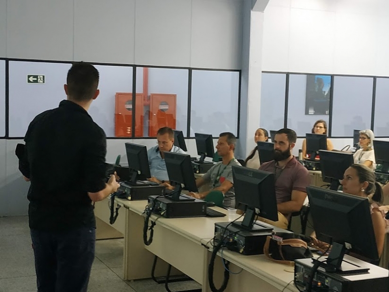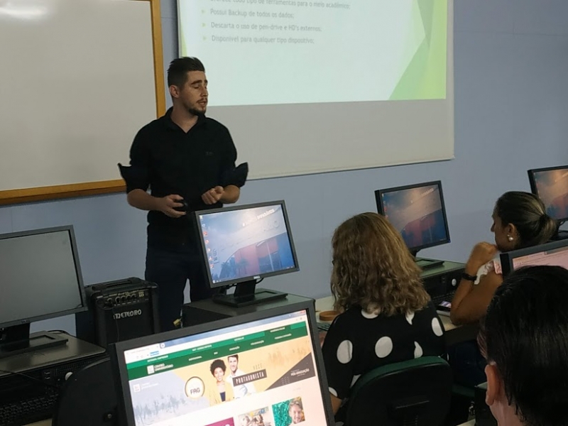 Durante a atividade realizada no Laboratório I do Bloco I os docentes ficaram atentos às explicações, esclareceram dúvidas e apresentaram sugestões sobre outras aplicabilidades das ferramentas Google na instituição.