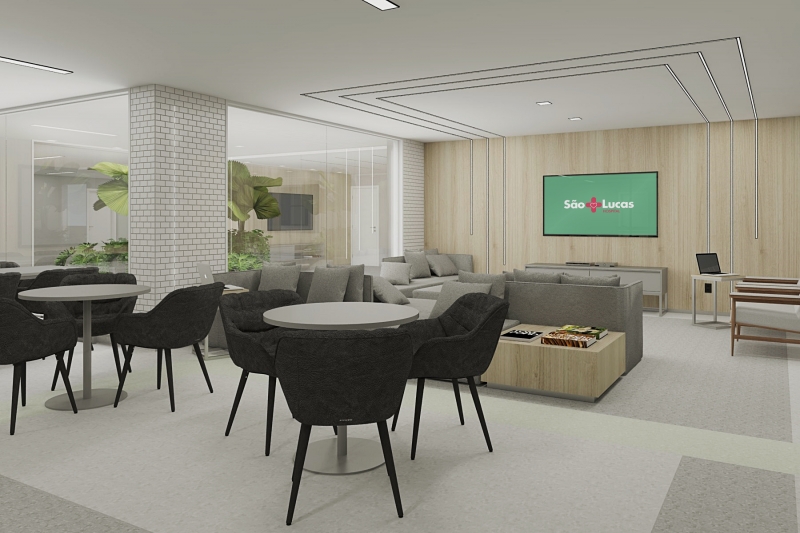 São turnos cansativos nos quais o peso da responsabilidade esgota fisicamente e emocionalmente os profissionais da saúde. Por isso, o descanso e o suporte são primordiais e ganharam ênfase no projeto. Serão 2.400 m² estruturados para o bem-estar das equipes de Centro Cirúrgico, para que possam descansar ou estudar, entre uma cirurgia ou outra.