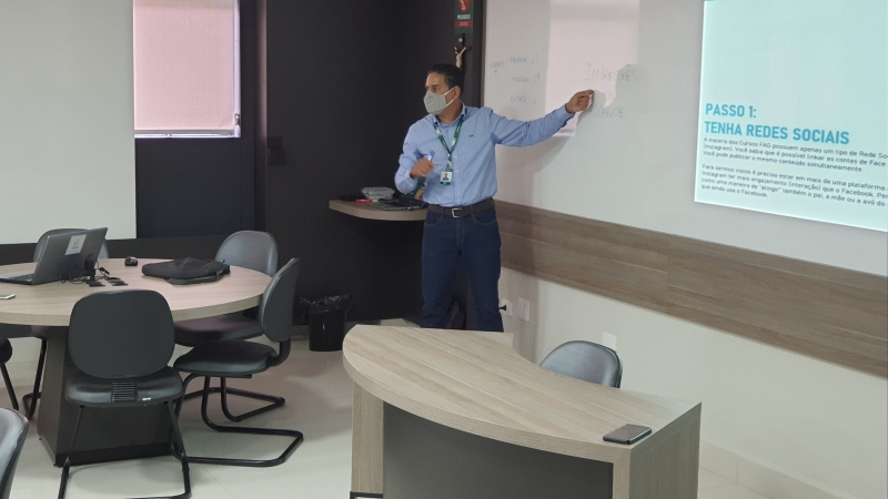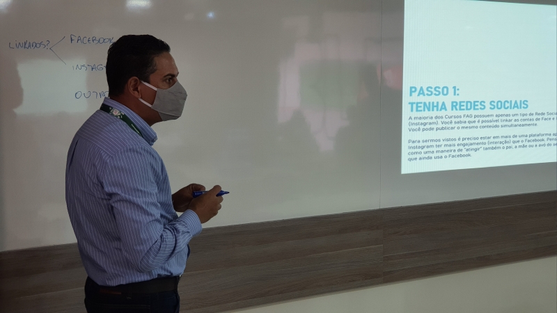 Por meio de apresentação de slides com exemplos, 11 passos foram colocados para os docentes. "A ideia foi mostrar que as redes sociais são consolidadas e que precisamos compreender melhor as métricas. Entendendo como elas funcionam, podemos conseguir atingir de maneira mais eficaz nossos públicos. A FAG tem muito conteúdo bacana, muitas ações que são legais e que podem ser externalizadas", diz o professor Ralph.