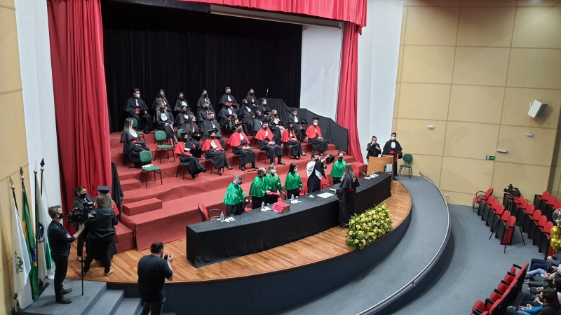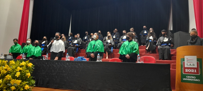 Os cursos de Design Gráfico, Direito e Engenharia Civil do Centro Universitário FAG realizaram nessa quinta-feira (22) as colações de grau dos acadêmicos. Duas cerimônias foram realizadas, uma às 17h e outra às 20h, ambas presididas pelo pró-reitor acadêmico, professor Afonso Cavalheiro Neto.