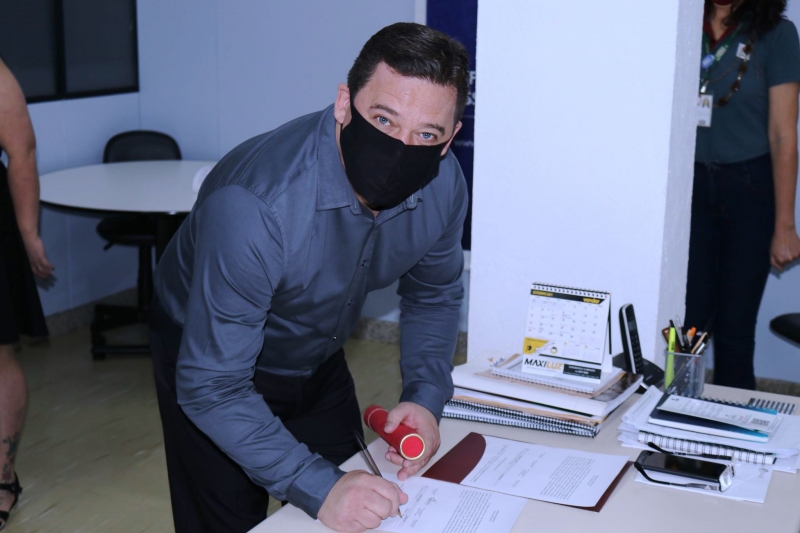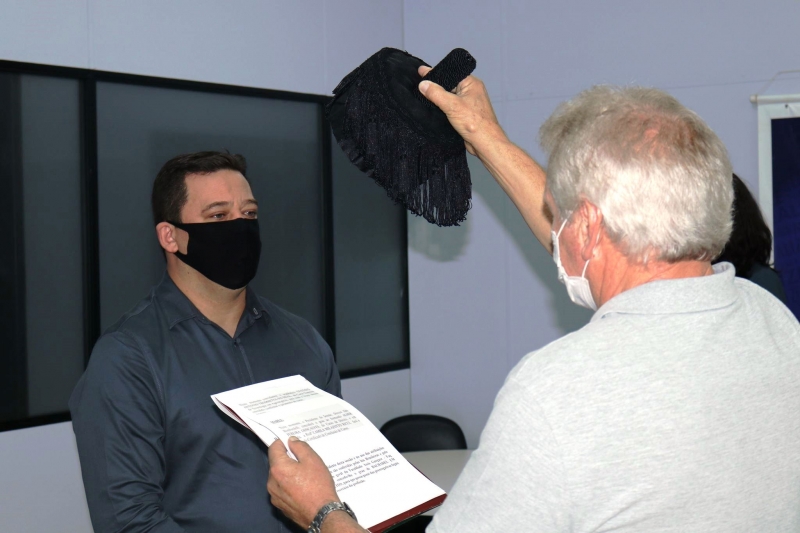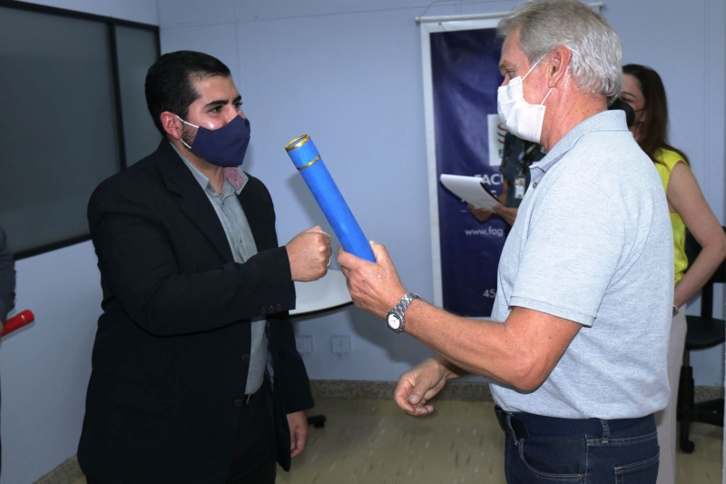 O diretor da FAG Toledo, Ildo Bombardelli presidiu na última sexta-feira (24) a sessão de Colação de Grau Especial do formando Almir Pereira Gonçalves, no curso de Direito e do formando Gustavo Antônio Trombetta da Silva, no curso de Tecnologia em Agronegócio. Os trabalhos da sessão apresentada pela secretária acadêmica Marli Fialho, foram acompanhados pela coordenadora de Direito, Camila Milazzotto Ricci. No fim da cerimônia, realizada na sala da Direção, o diretor parabenizou os formandos e fez uma breve fala sobre ética e responsabilidade social enquanto profissionais.