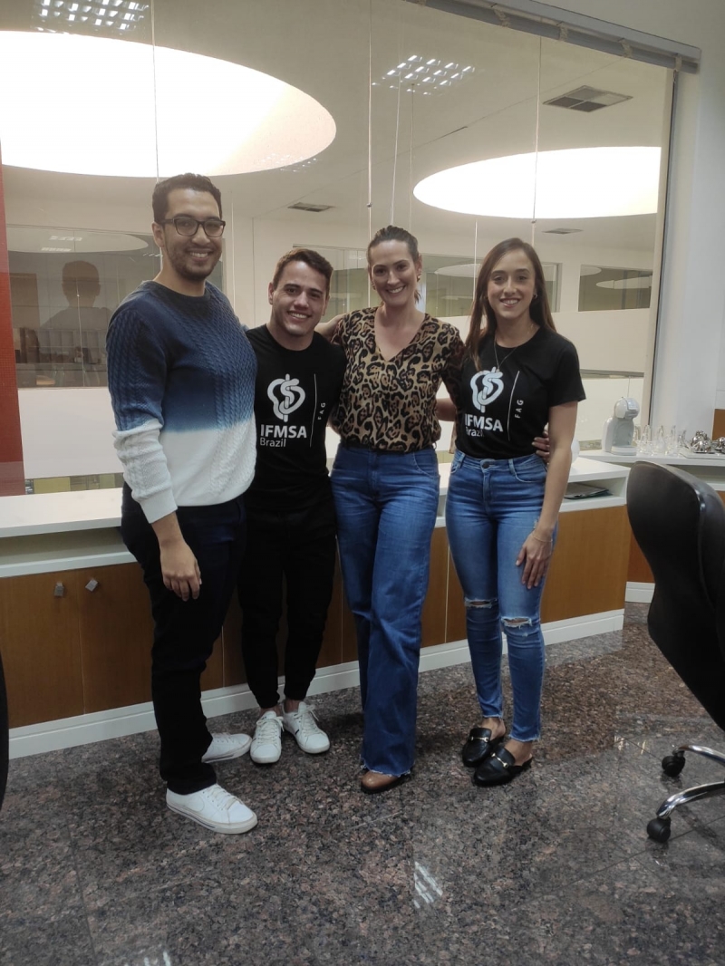 Integrantes do comitê IFMSA Brazil FAG representaram os acadêmicos de Medicina da Instituição. Arthur Constancio Silva, do 7° período; Amabile Andreetta, do 10° período; Isabela Souza, 7° período; e Alinne Taylise Penteado, 6° período participaram da comissão organizadora do evento. Arthur e Amabile, que são coordenadores da região Sul, ficaram responsáveis pela abertura do evento, realizar sessões e recepcionar palestrantes como o neurologista e ex-presidente nacional da Federação Matheus Trilico.