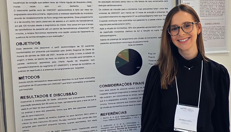 O estudo, orientado pelos médicos Rodrigo Nicacio e Anderson Dallazen, foi o TCC (Trabalho de Conclusão de Curso) que Eduarda apresentou em 2022, no qual mostra características epidemiológicas dos pacientes com infarto agudo do miocárdio, submetidos à terapia com trombólise, no oeste do Paraná (área de abrangência do CONSAMU - Consórcio de Saúde dos Municípios do Oeste do Paraná), tanto por equipes terrestres, quanto pelo aeromédico .