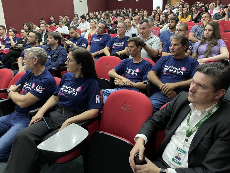 O evento contou com profissionais da área, estudantes e professores dos cursos de Negócios Imobiliários, Arquitetura e Urbanismo, Engenharia Civil no Centro FAG e do curso técnico de transações imobiliárias do colégio Wilson Joffre