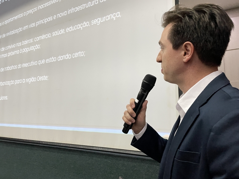 A 1ª Semana Acadêmica de Negócios Imobiliários contou com a presença do coordenador de planejamento do IPC (Instituto de Planejamento de Cascavel), Marcos Augusto Borges, que ministrou a palestra de abertura: ?Novo Plano Diretor de Cascavel: Oportunidades no Mercado de Trabalho?.