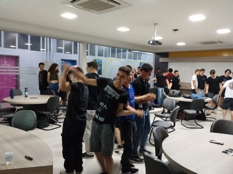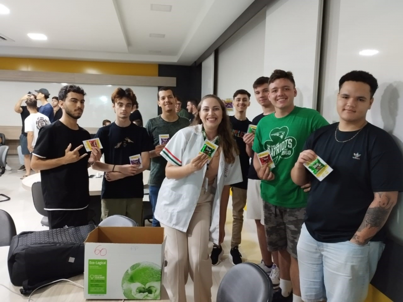 No final da explanação, a professora Jéssica propôs uma atividade integrativa com os estudantes, que também foram presenteados com um cartão de boas-vindas e um chocolate.