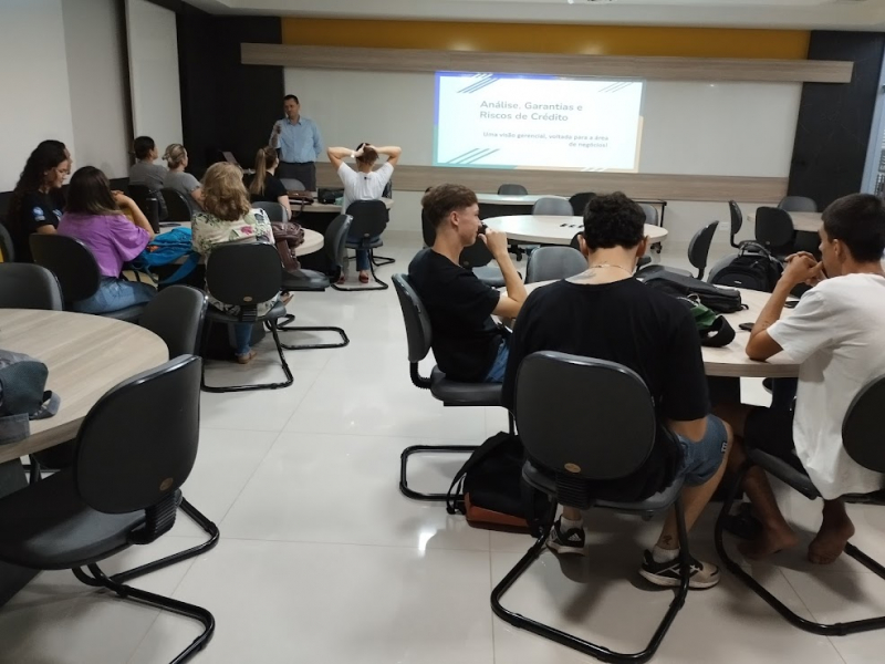 Os acadêmicos de Gestão Financeira e Processos Gerenciais tiveram uma aula com um convidado especial na última terça-feira (9) com o Gerente da Cooperativa de Crédito Cresol Integração, Selson Rohsler. O convidado é egresso do curso de Administração, atua no setor desde 2008 e explanou sobre sua experiência de gestor e na área de crédito, orçamento, gestão de investimentos e orientações. "Foi uma palestra muito dinâmica, com muitos questionamentos por parte dos alunos sobre o setor de crédito, curiosidades sobre análise, garantias, riscos e mudanças na legislação", elenca a professora Edina Kinzler, que recebeu o profissional na sala Yellow, junto ao coordenador dos cursos Adroaldo Alfeu Carniel. A atividade foi proposta na disciplina de "Análise de Crédito e Cobrança". "É um tema relevante e presente na grade dos cursos, principalmente de Gestão Financeira. Foi uma palestra importante para direcionamentos no campo de trabalho dos nossos alunos", afirma Adroaldo.