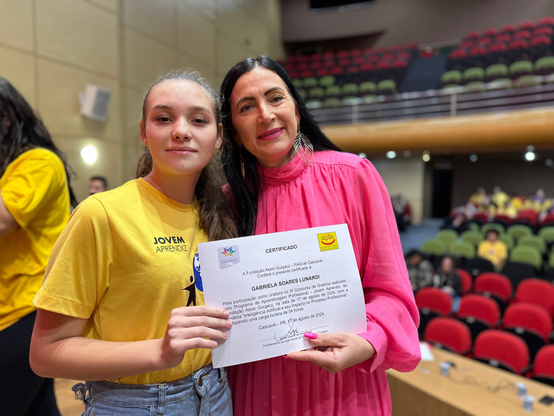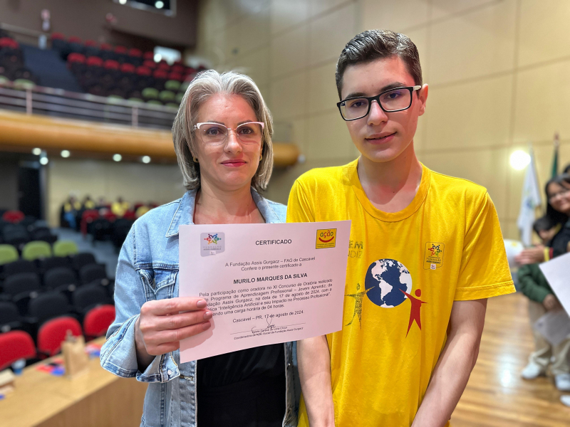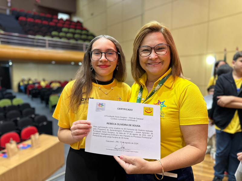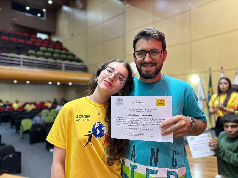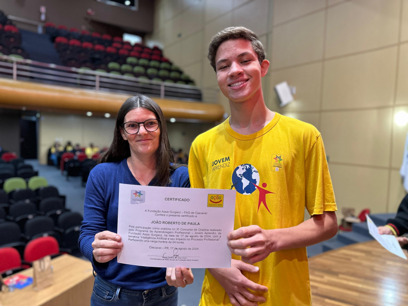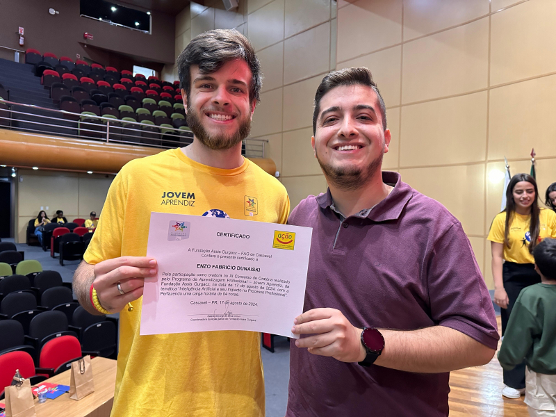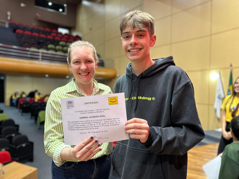 A FAG (Fundação Assis Gurgacz, realizou, no sábado (17), o 11º Concurso de Oratória do programa de aprendizagem profissional Jovem Aprendiz, uma iniciativa que capacita jovens entre 14 e 24 anos para o mercado de trabalho. Este ano, o tema central foi "Inteligência Artificial e o seu impacto nas profissões", desafiando 17 participantes a explorarem as mudanças e oportunidades que a tecnologia traz para diferentes áreas.