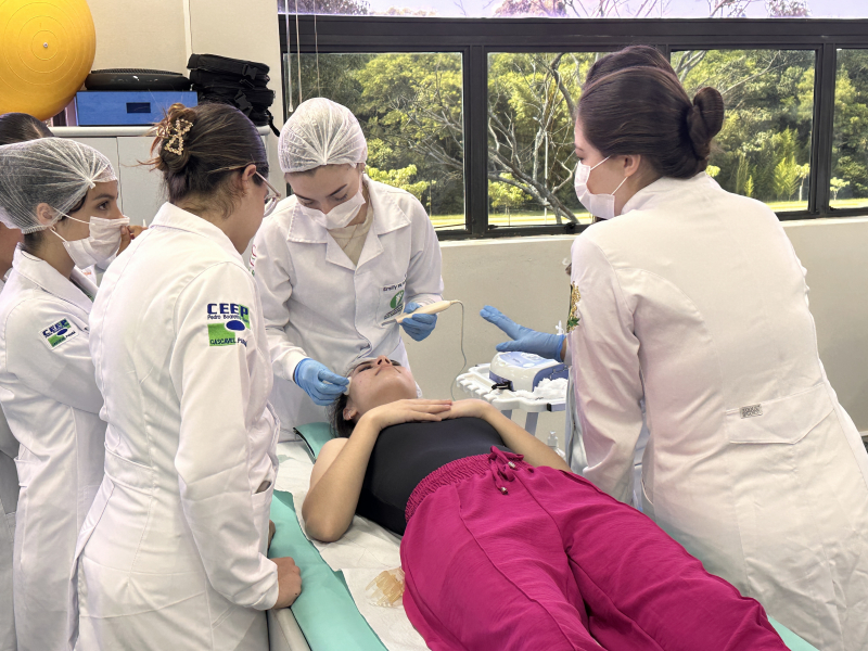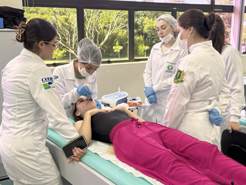 Alunas do curso técnico de Estética do CEEP (Colégio Estadual de Educação Profissional), visitaram o Centro FAG para conhecer o curso superior de Tecnologia em Estética e Cosmética, da Faculdade Dom Bosco.