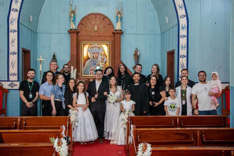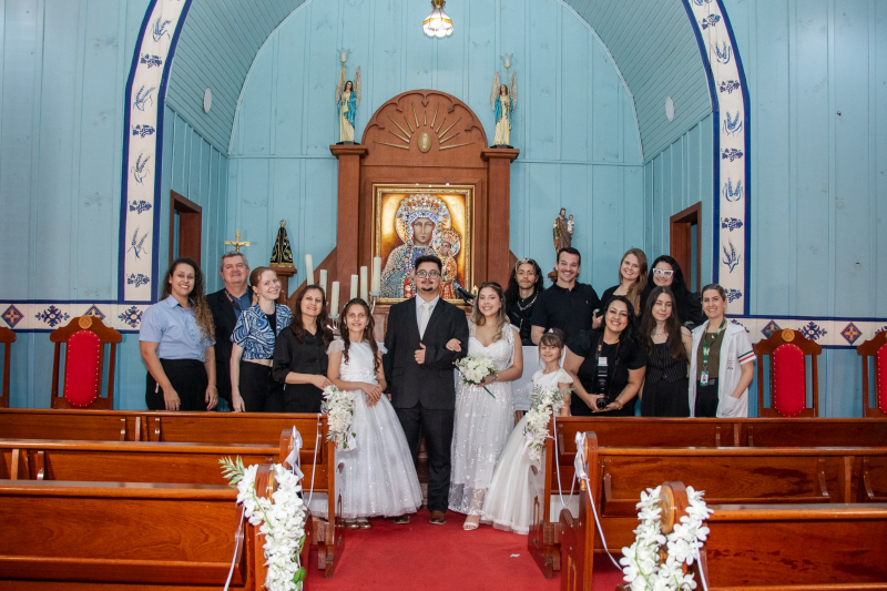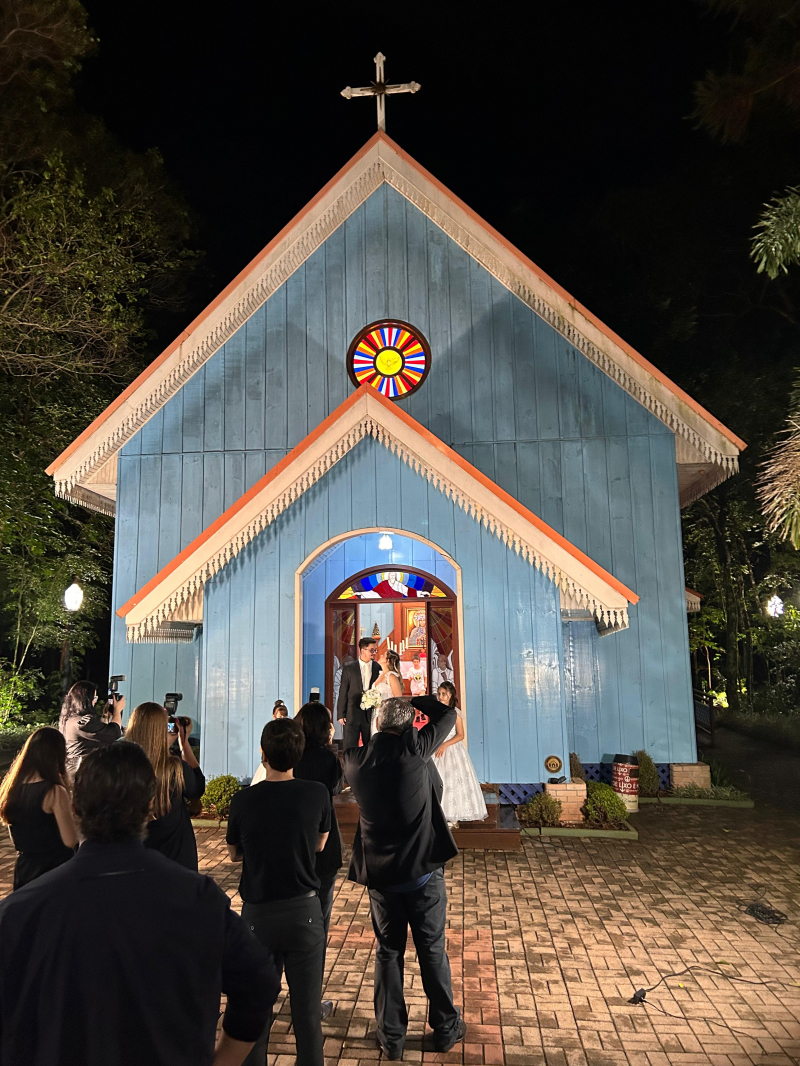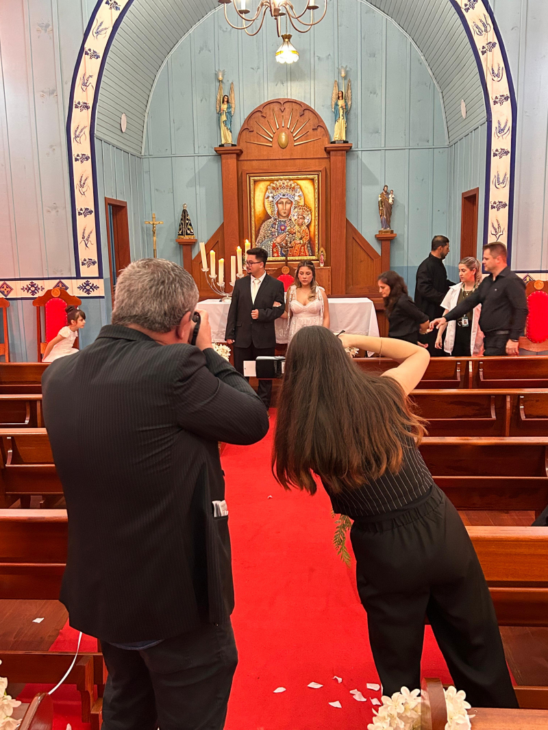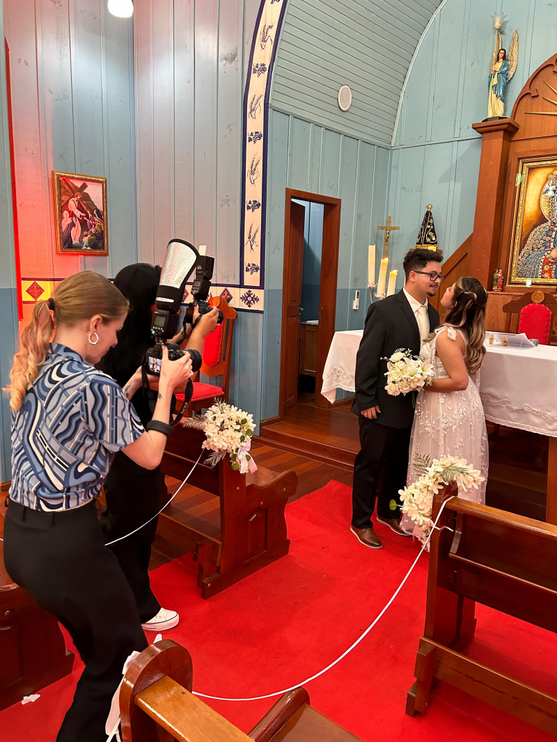 O curso de Fotografia do Centro Universitário FAG promoveu na última semana um casamento simulado na Igreja Czestochowa, que fica localizada na Reserva Conservacionista da Instituição. A professora da disciplina de Fotografia Especializada, Luana Strapasson, explica que essa é uma atividade prática, baseada na metodologia PBL (Problem-Based Learning), na qual os acadêmicos do 4º período deveriam fotografar um evento