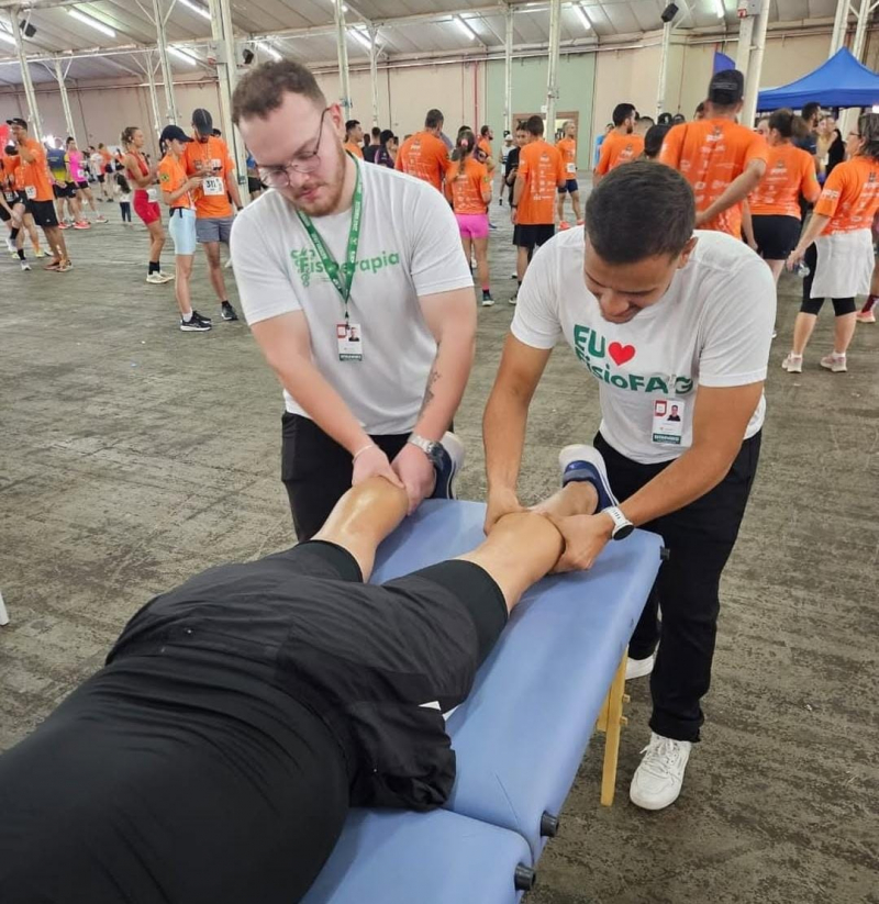 Durante a corrida e, também, após o término, os acadêmicos ficaram na ativa para realizar alongamentos e atender os atletas em caso de lesões. Segundo o estudante João Vitor Trento, a terapia manual para alívio de dores foi realizada em diversos atletas.