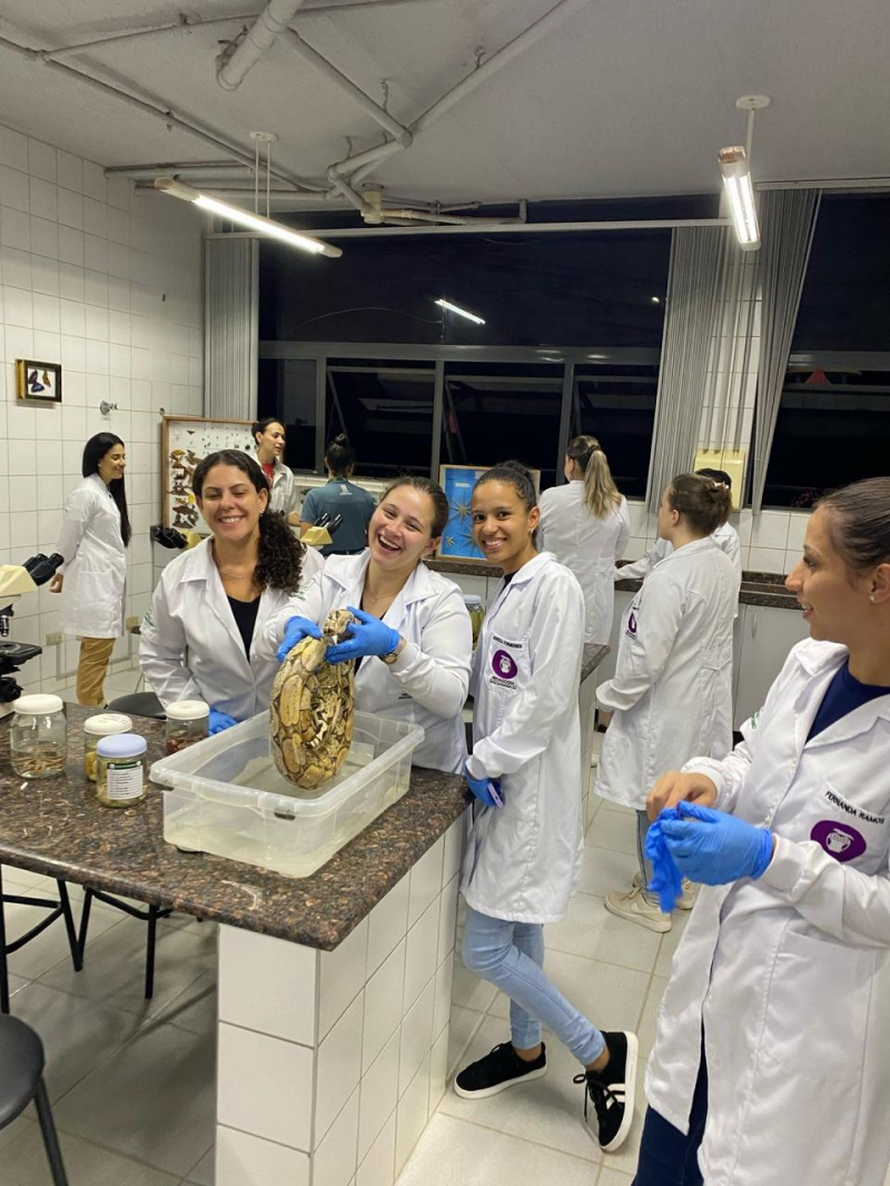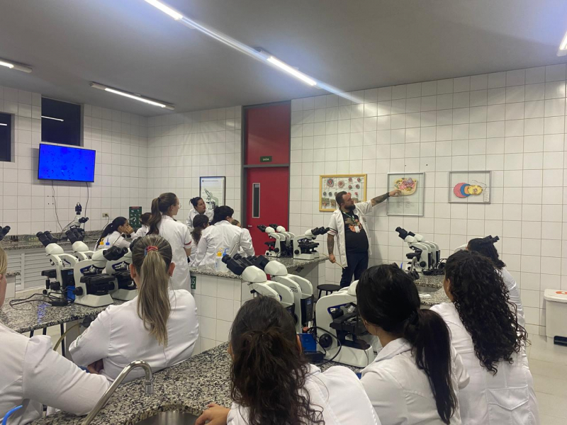 Para aproximar a teoria da prática e tornar o ensino de Ciências Naturais mais dinâmico, as acadêmicas do 5º período de Pedagogia exploraram os laboratórios de Anatomia, Geologia, Microscopia e Zoologia do Centro FAG.