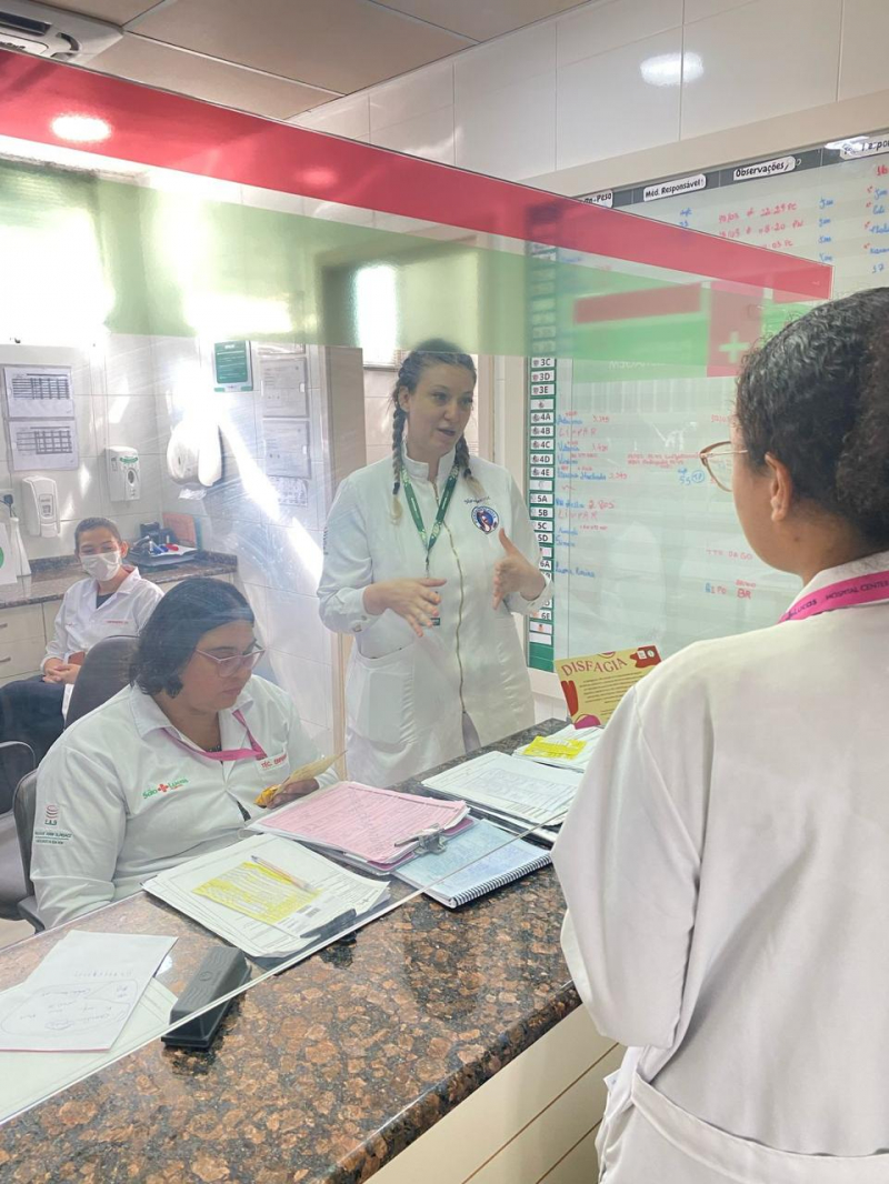A professora Ana Alice Meneses, responsável pela disciplina de Fonoaudiologia Hospitalar e supervisora da ação, destaca a importância do fonoaudiólogo no diagnóstico, tratamento e reabilitação da disfagia. “O profissional atua junto à equipe médica para garantir uma deglutição segura e eficaz, prevenindo complicações como desnutrição, desidratação e aspiração traqueal, que pode levar a infecções respiratórias.”