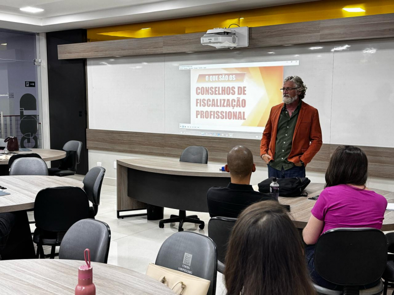 O encontro, realizado na disciplina de Negócios Imobiliários, ministrada pelo professor Davis Dutra, possibilitou discussões sobre a importância da qualificação profissional para os corretores de imóveis, a função do Creci PR, a ética e responsabilidade dos Gestores Imobiliários.