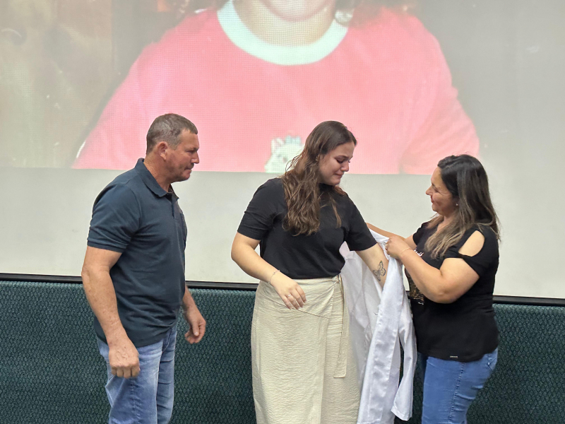 “Eles recebem o jaleco nesse cerimonial tão importante que representa a missão e a responsabilidade com a educação”, detalha a coordenadora do curso, Danieli Sanderson.