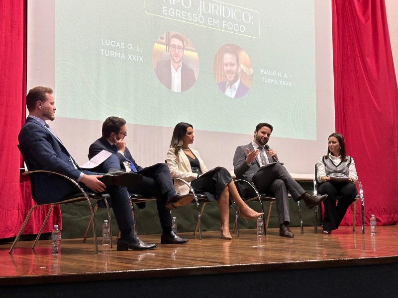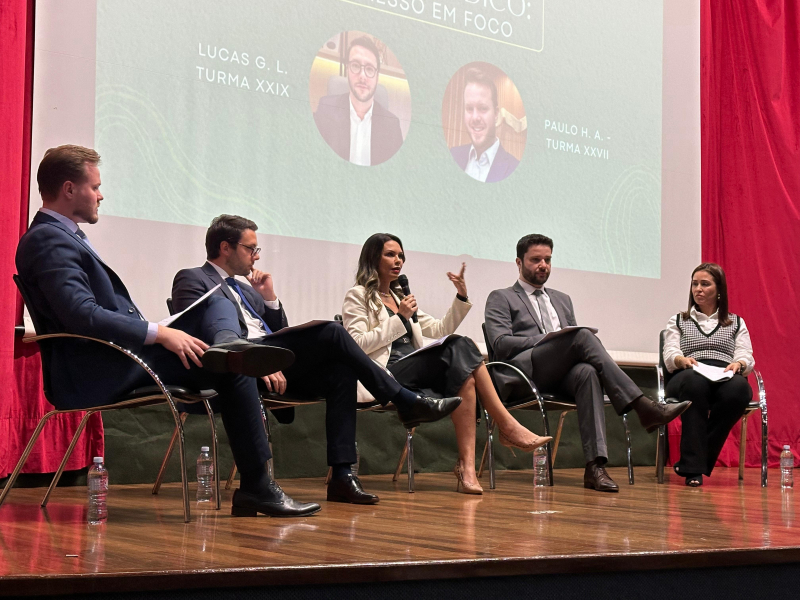 Participaram da mesa-redonda Thalita Regina Funghetto, Lucas Oliveira, Paulo Abatti e Lucas Gustavo Lazaroto, que dividiram histórias marcantes de desafios, escolhas e conquistas no mundo jurídico e do período da graduação.