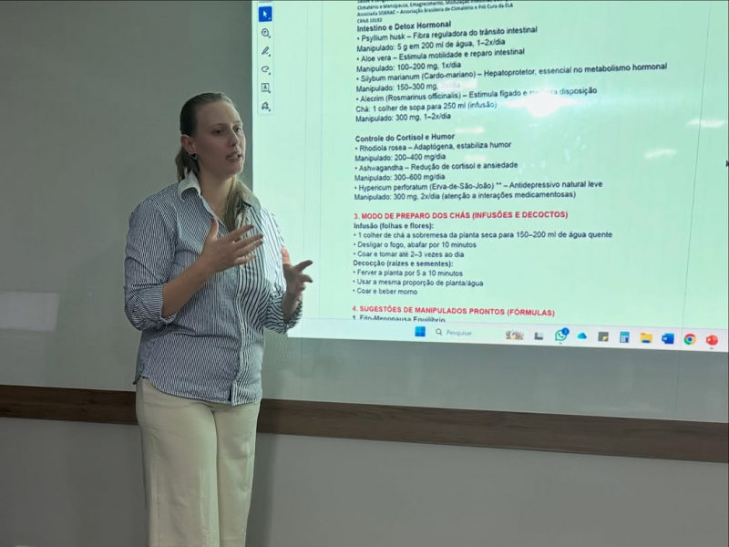 Para iniciar a última noite da Semana Acadêmica, foi convidada Izabel Georgia para ministrar a palestra “Intestino: o que todo nutricionista precisa saber”. Além disso, também foram realizados outros quatro minicursos: “Fitoterapia na menopausa: alternativas naturais para o equilíbrio hormonal”, com Mônica Meurer; “Oficina de receitas com suplementos: enriquecer alimentos é possível?”, ministrado por Monia Trombin; “Descomplicando o hemograma: anemias na prática”, com Roberta Dal Castel; e “Avaliação das medidas de dobras cutâneas”, com Shaieny Martinazzo.
