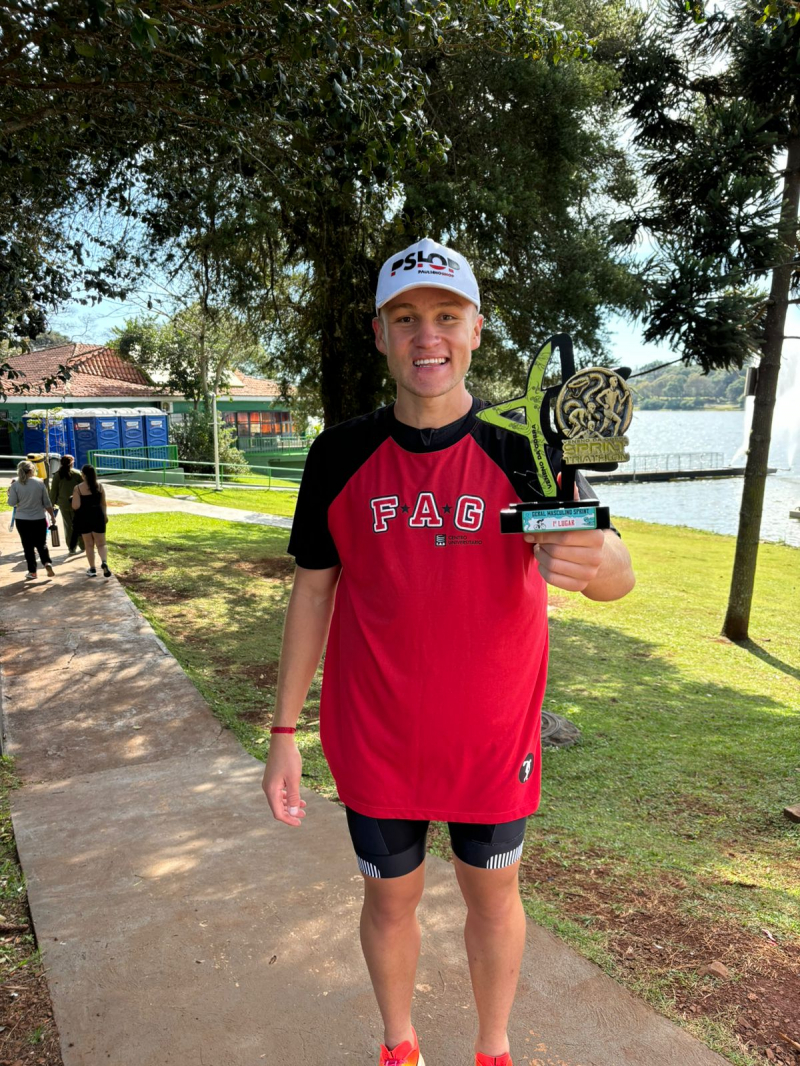 Atleta profissional de triathlon, Gustavo concilia a rotina intensa de treinos com os estudos no Centro FAG, onde destaca o suporte que recebe da instituição. “Sou muito grato à FAG por todo apoio. Isso faz total diferença na minha formação, tanto como atleta quanto como futuro profissional de Educação Física.”