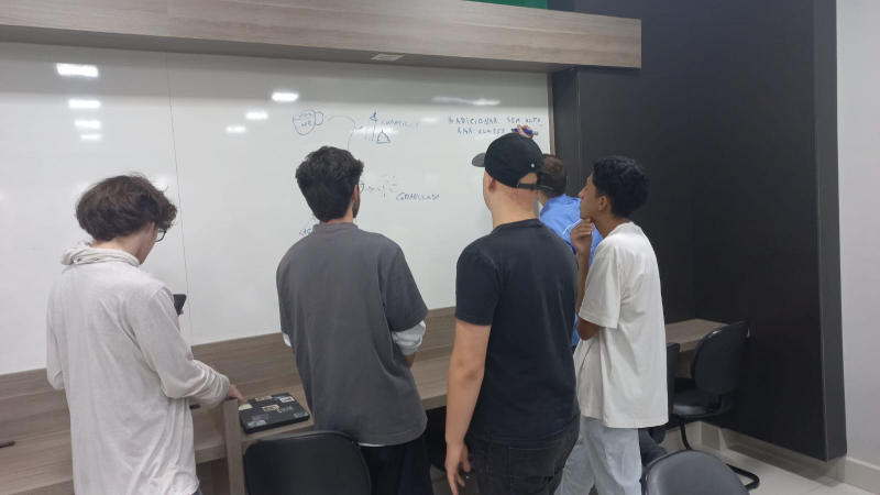 Segundo o professor Lucas, a atividade teve como propósito estimular o entendimento prático e verbalização dos conceitos estudados. “Ao colocar o conhecimento em palavras e se preparar para uma apresentação com novos recursos e pouco tempo, o aluno reforça o que aprendeu, exercita a criatividade e desenvolve a capacidade de conceituação. Além disso, ao misturar os grupos, promovemos interação entre colegas que normalmente não trabalham juntos, o que fortalece o trabalho em equipe e o engajamento coletivo da turma.”