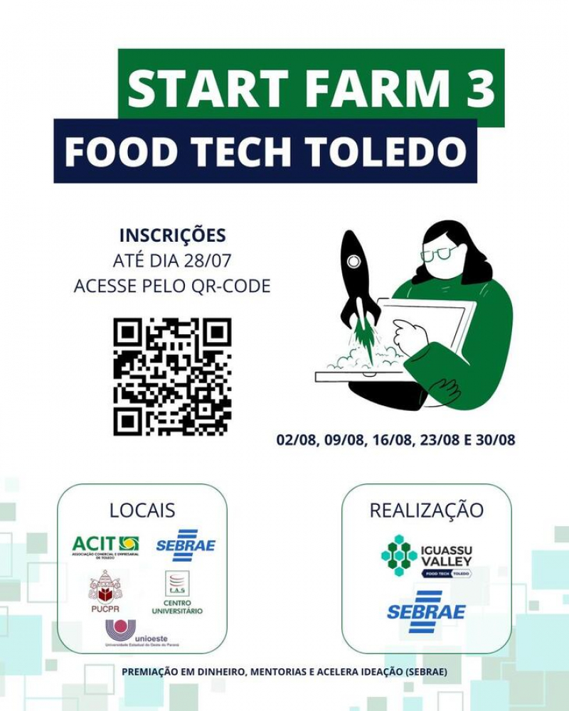 Os encontros do Start Farm Toledo são gratuitos e abertos ao público. As inscrições se encerram no dia 28 de julho e podem ser feitas pelo link.