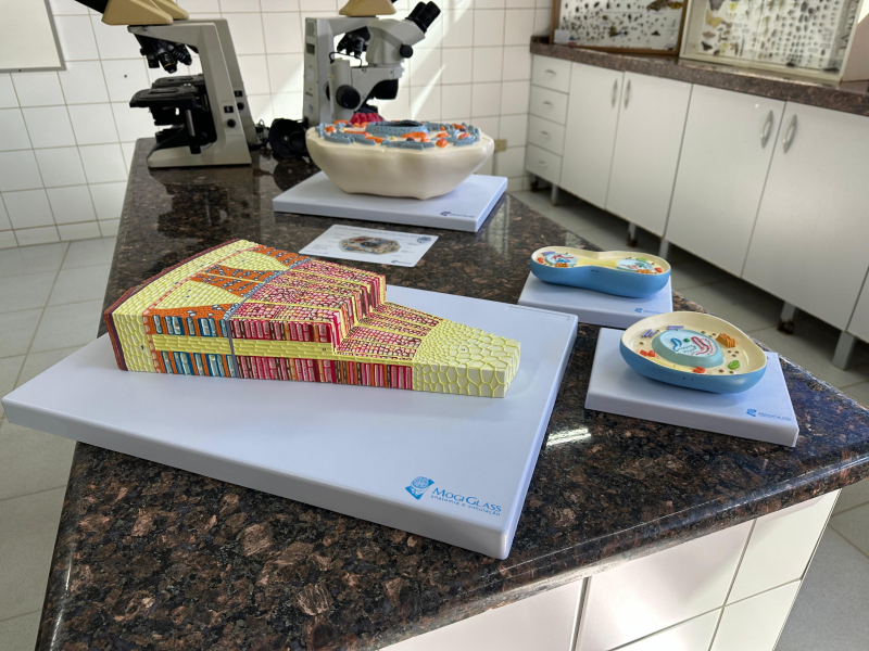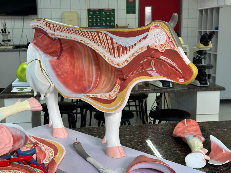 Entre os materiais recém-adquiridos estão modelos anatômicos completos do anfioxo, peixe ósseo, anfíbio, galinha, rato e bovino. Além disso, os laboratórios passam a contar com modelos didáticos de botânica — raiz, caule e flor — e de biologia celular, representando as células animal, vegetal e procarionte, além dos processos de mitose e meiose.