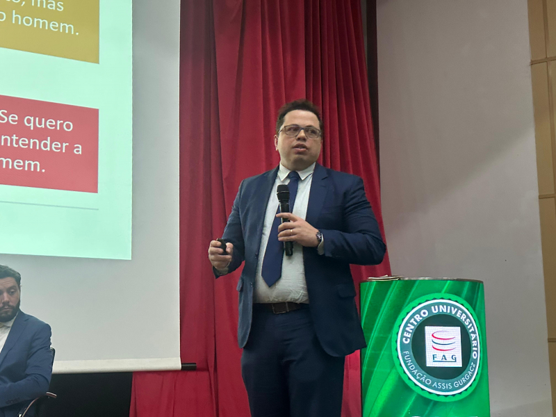 O professor Guilherme Rezende apresentou o livro “A tutela dos grupos vulneráveis pelas obrigações processuais positivas”, resultado de sua tese de doutorado. Para ele, a oportunidade de discutir a obra com os acadêmicos em um momento tão simbólico foi especial. “É muito significativo poder falar sobre nossas pesquisas na abertura oficial do semestre. Isso reforça a importância da produção científica dentro da universidade”, destaca.