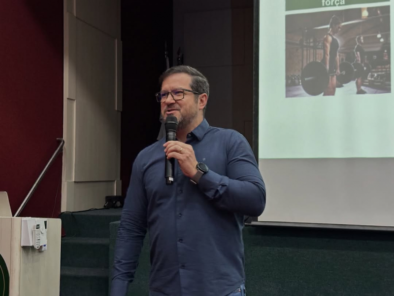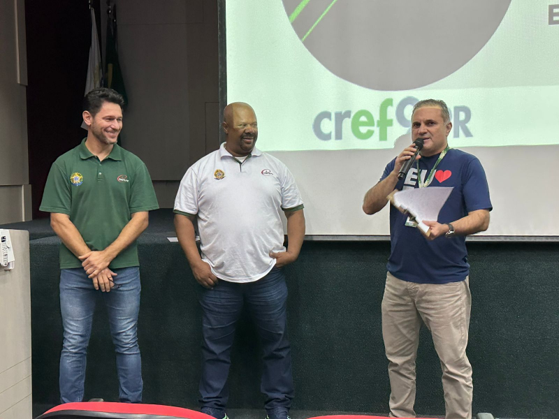 À noite, a programação foi conduzida pelo delegado do CREF9/PR, Roberto Grisa, que deu continuidade à temática, reforçando a relevância da atuação dos profissionais de Educação Física nos diferentes contextos de saúde, esporte e qualidade de vida.