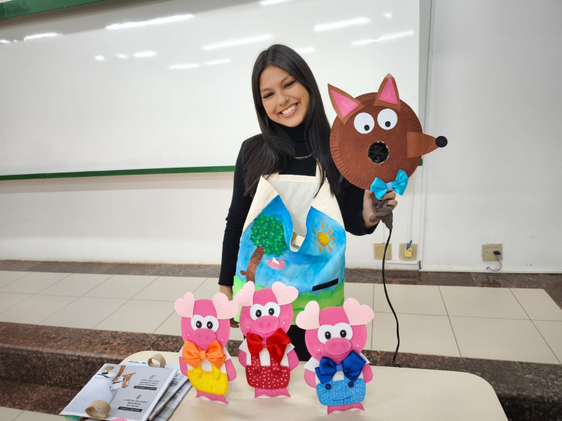 As alunas prepararam uma série de contações de histórias, utilizando recursos visuais para chamar a atenção do público infantil. A avaliadora convidada da noite foi a pequena Sofia, familiar de uma das acadêmicas. Ela acompanhou as apresentações e, em seguida, deu seu veredito sobre as histórias de que mais gostou. "A visão da criança sobre o que foi preparado é completamente diferente, e a presença da Sofia enriqueceu muito as apresentações. As alunas conseguem perceber o que chama mais a atenção dos pequenos e com quais conteúdos ou recursos eles mais se conectam. As apresentações foram lindas, as acadêmicas capricharam bastante, e a nossa convidada especial também aprovou os trabalhos apresentados", avalia a docente.