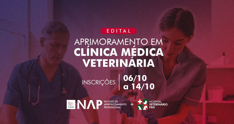 O NAP (Núcleo de Aperfeiçoamento Profissional) do Centro Universitário FAG está com inscrições abertas para o Curso de Aperfeiçoamento Profissional em Clínica Médica Veterinária, voltado a profissionais graduados em Medicina Veterinária que buscam aprimorar seus conhecimentos e vivências práticas na área.