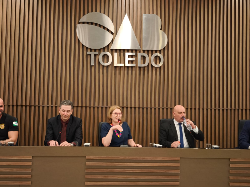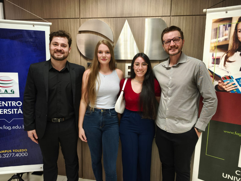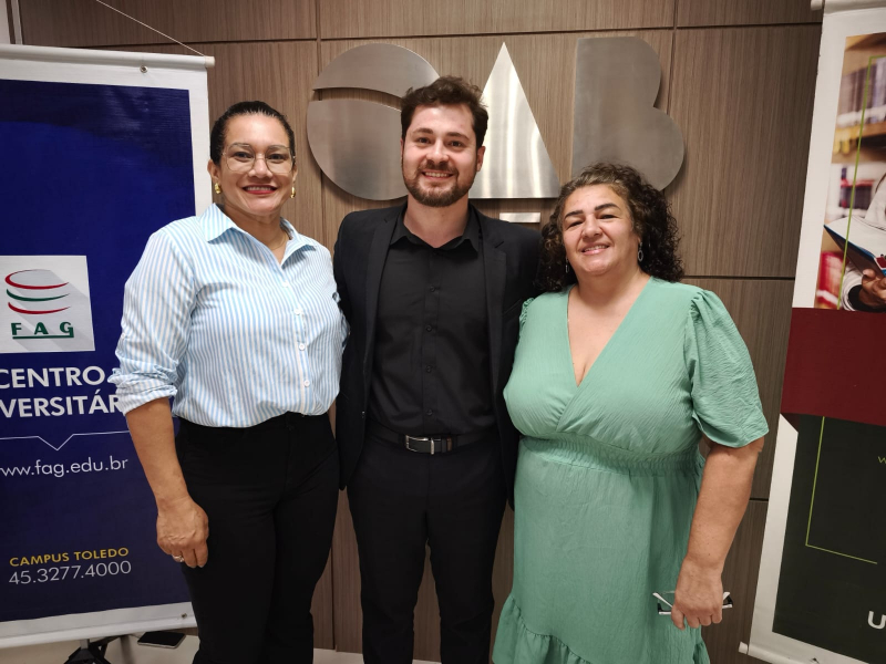 A advogada Anemere Dulaba também participou da mesa. "É um momento excelente para os alunos compreenderem o que envolve a trajetória de cada atividade a ser exercida, auxiliando aqueles que ainda têm dúvidas sobre qual ramo seguir. Mas posso garantir que eles já escolheram um ótimo curso, com uma ampla gama de oportunidades de trabalho", analisou. O promotor de Justiça Alex Fadel, docente do curso de Direito do Centro FAG de Cascavel, também participou do debate. "Vim para apresentar aos alunos a possibilidade de atuação na promotoria. Trouxe um pouco da nossa trajetória de vida e de como cheguei ao Ministério Público, à carreira de promotor de Justiça", afirmou.