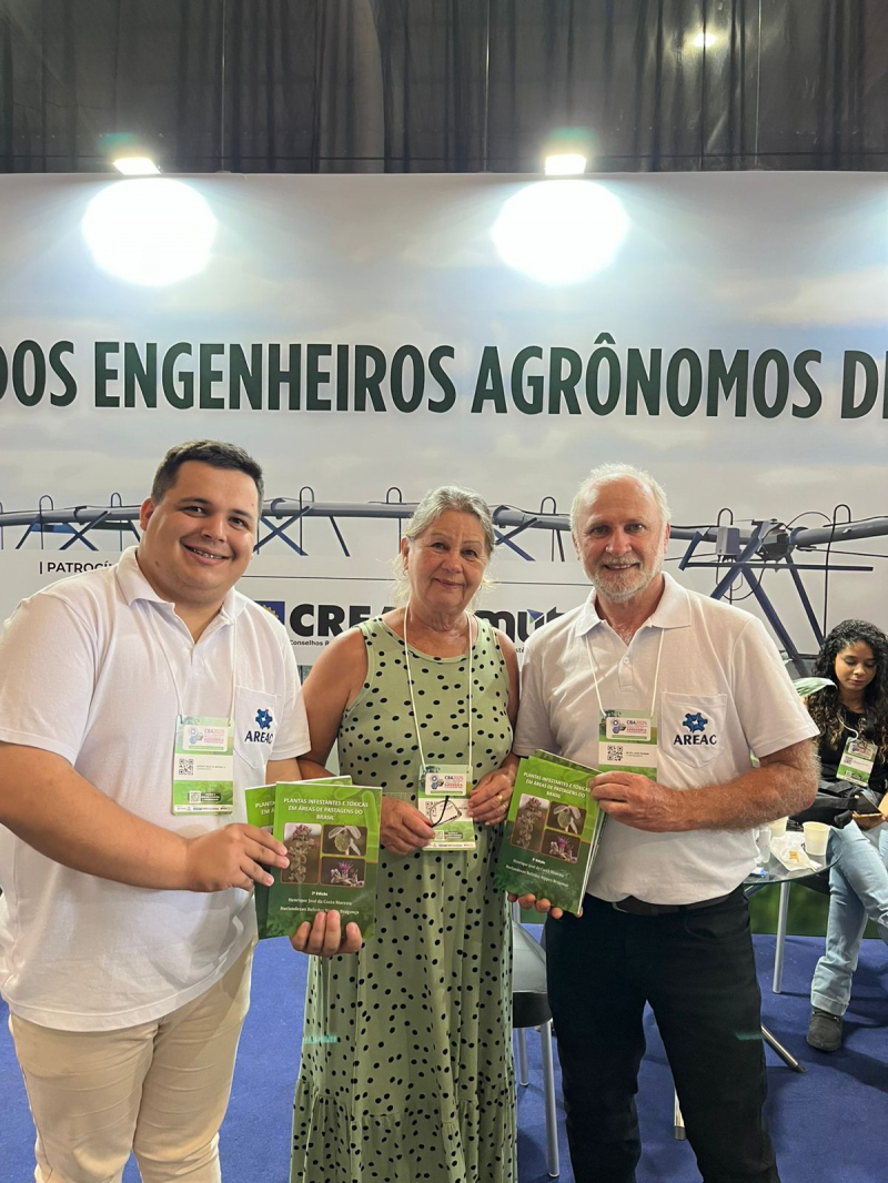 Além disso, Arthur e a coordenadora do curso de Agronomia, professora Ana Paula Mourão, realizaram a entrega de exemplares do livro, “Plantas Infestantes e Tóxicas em Áreas de Pastagem do Brasil”, dos autores Henrique Moreira e Horlandezan Bragança, à biblioteca da instituição. A obra foi recebida como doação da autora durante o congresso e já está disponível no acervo da biblioteca, ampliando as possibilidades de pesquisa dos cursos de Agronomia, Medicina Veterinária e Ciências Biológicas.