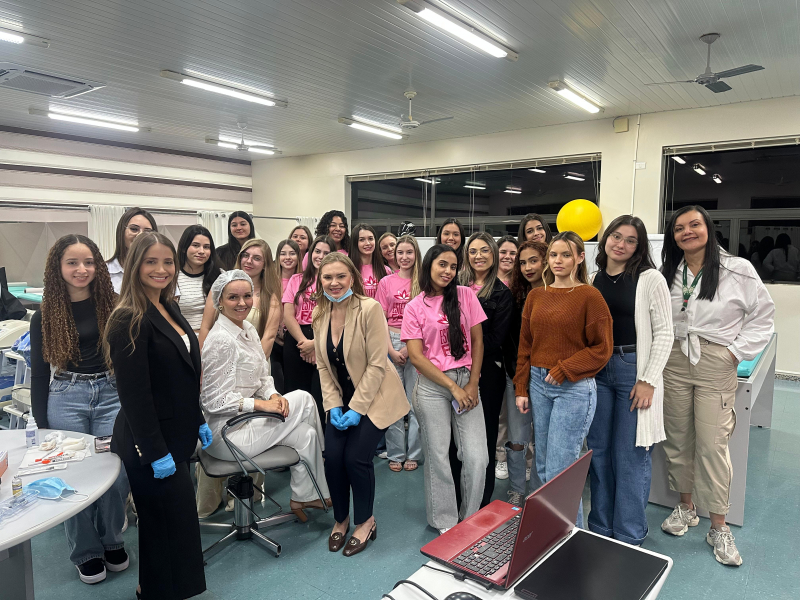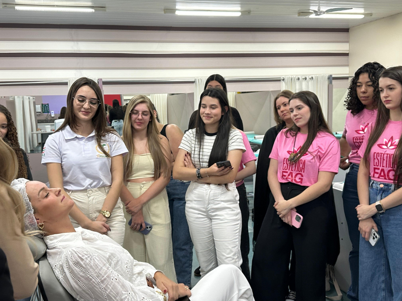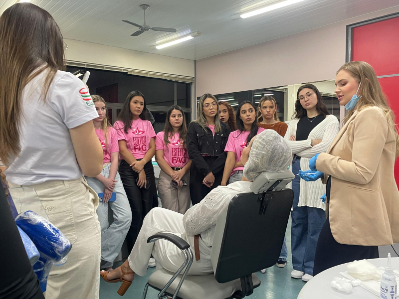 Os acadêmicos de Estética e Cosmética também participaram de oficinas práticas de injetáveis, ministrada por Patrícia Knecht; limpeza de pele multifuncional, conduzida por Suelen Garbin Cattani; Tricologia Aplicada à Estética, ministrada por Patrícia Rosa Lucca; e Tecnologia Scizer, com Luana Antunes.