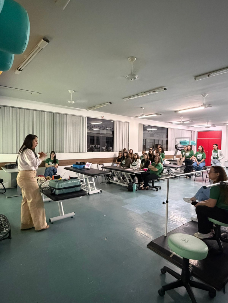 As noites seguintes foram dedicadas às oficinas práticas, que envolveram acadêmicos de Fisioterapia e Estética e Cosmética. Mais de dez atividades foram conduzidas por profissionais convidados, que compartilharam técnicas, vivências e experiências de mercado. Entre os temas abordados estiveram a fisioterapia vestibular, as disfunções cervicais, a fisioterapia desportiva, o atendimento domiciliar em pacientes com lesão medular, a ventilação mecânica, as disfunções sexuais dolorosas e a fisioterapia musculoesquelética, além de oficinas voltadas à pediatria, terapia manual e cardiopulmonar.