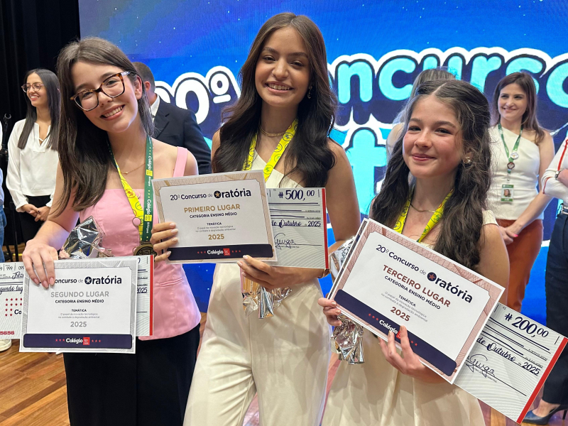 A aluna Gabriela Albertassi, da 3ª série do High College, conquistou o 2º lugar na oratória. Para ela, o concurso é uma oportunidade valiosa na sua formação. “Foi uma emoção gigantesca participar dessa vez, porque além de ser meu sexto ano participando, é minha última vez. Eu amo esse concurso com todo o meu coração e me preparei por meses, e foi muito especial ver todos se esforçando e mostrando esses resultados incríveis”, conclui.